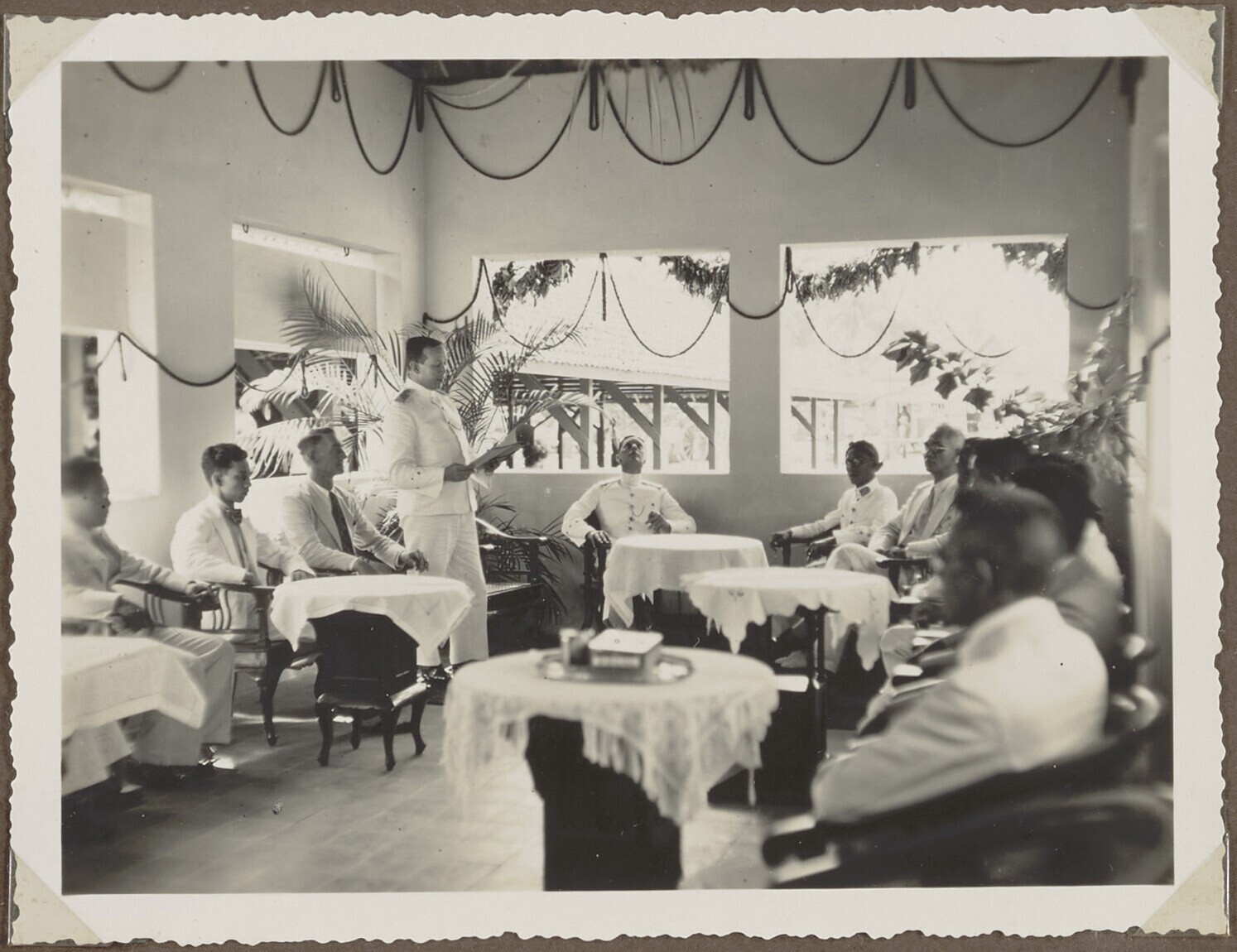 Één van de aanwezige bestuursleden houdt een toespraak