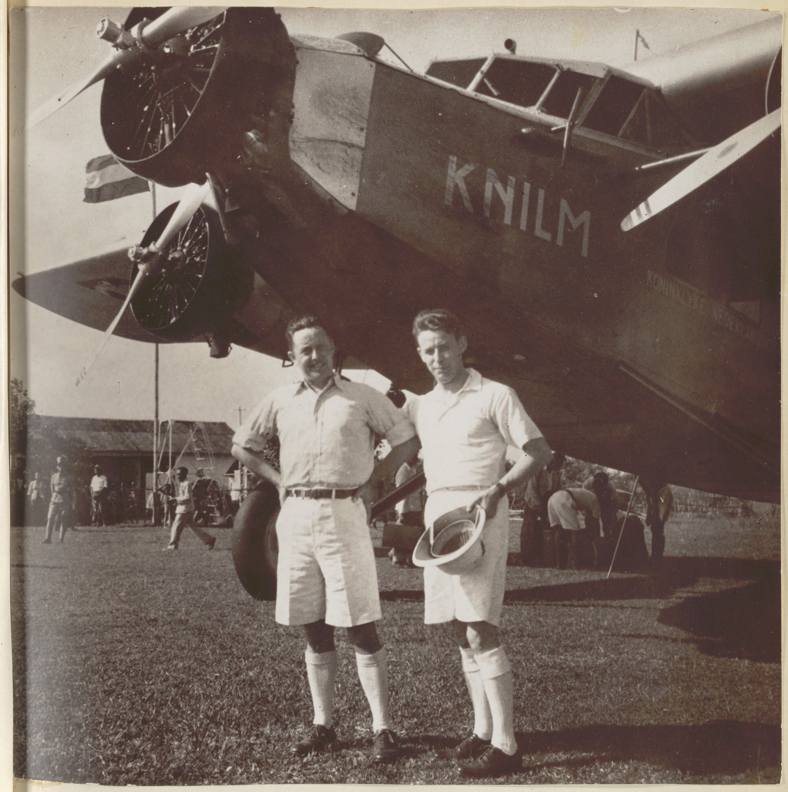 Portret van twee mannen bij een vliegtuig op Bali