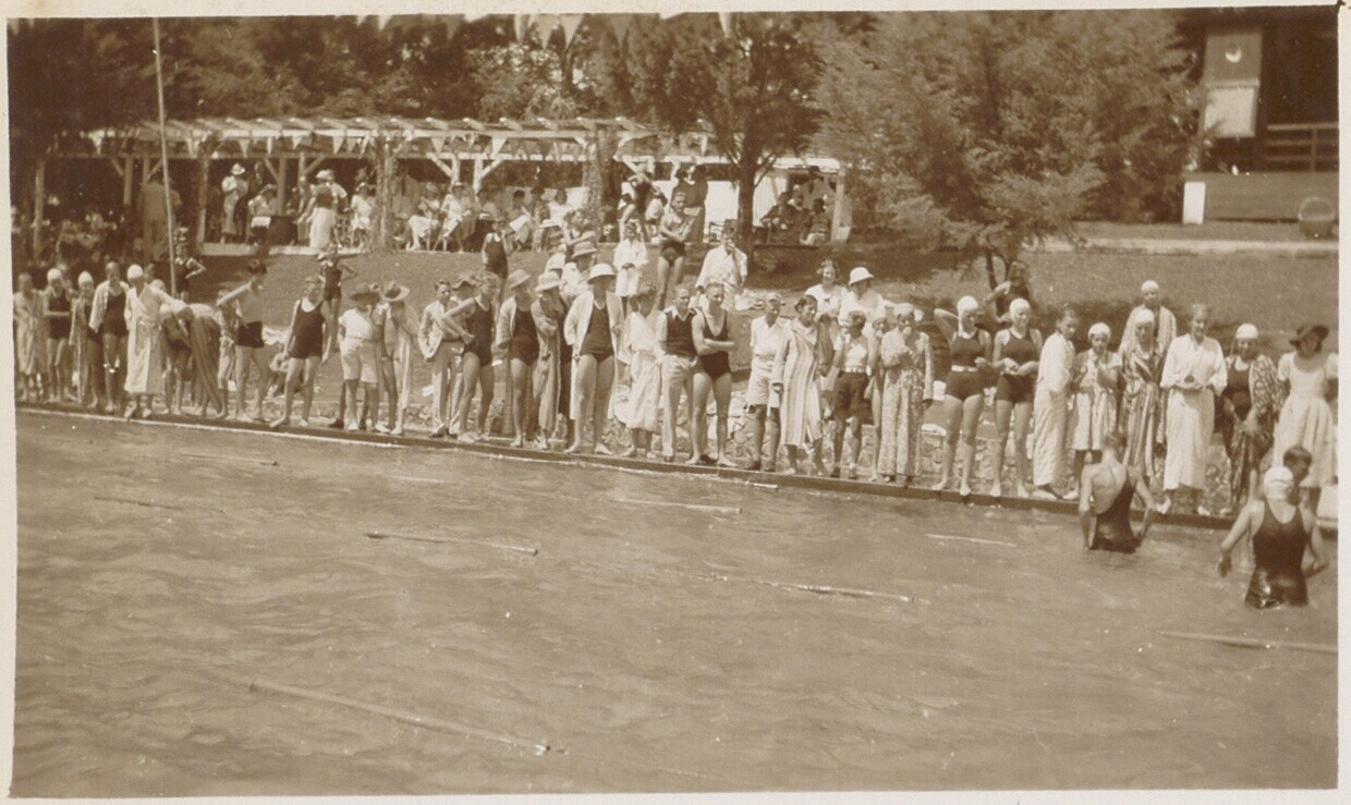 Albumblad met foto's van zwemwedstrijden