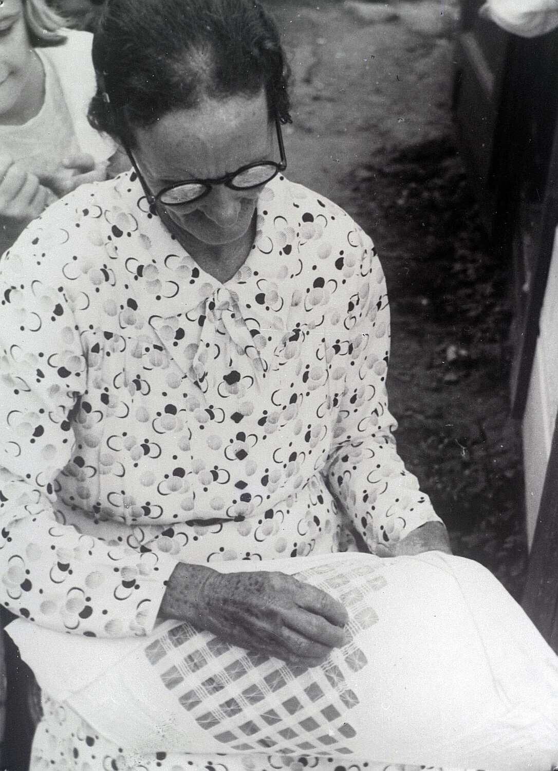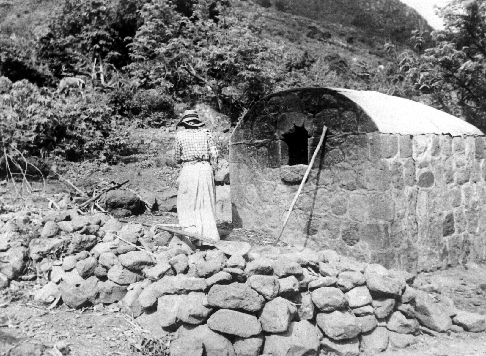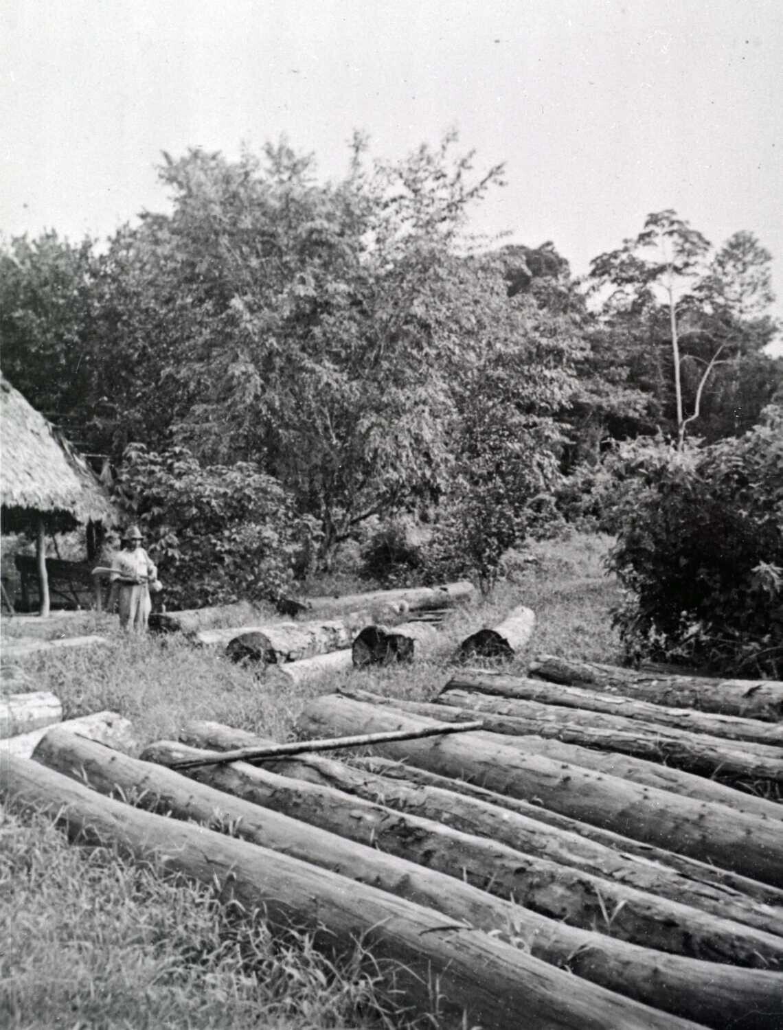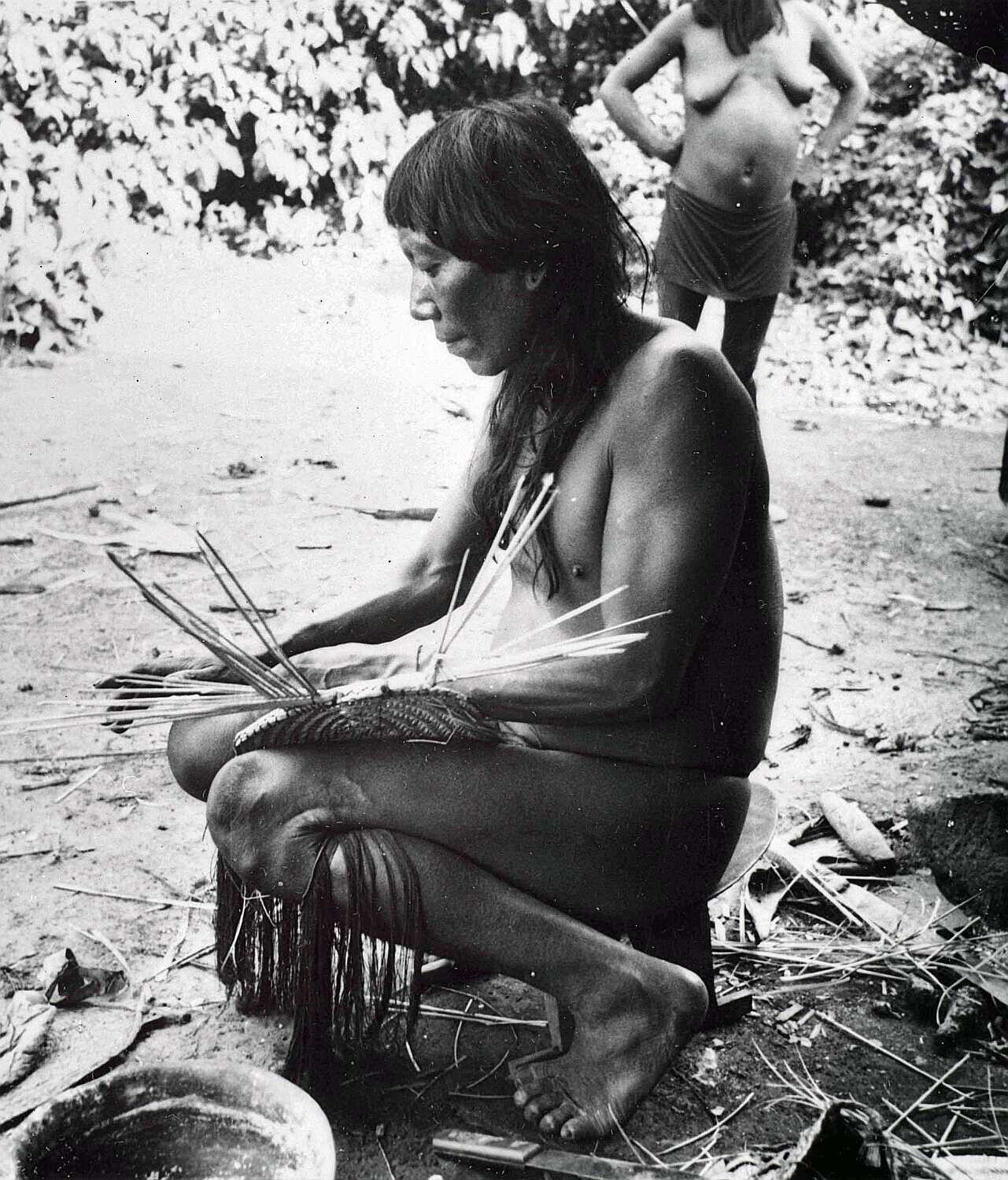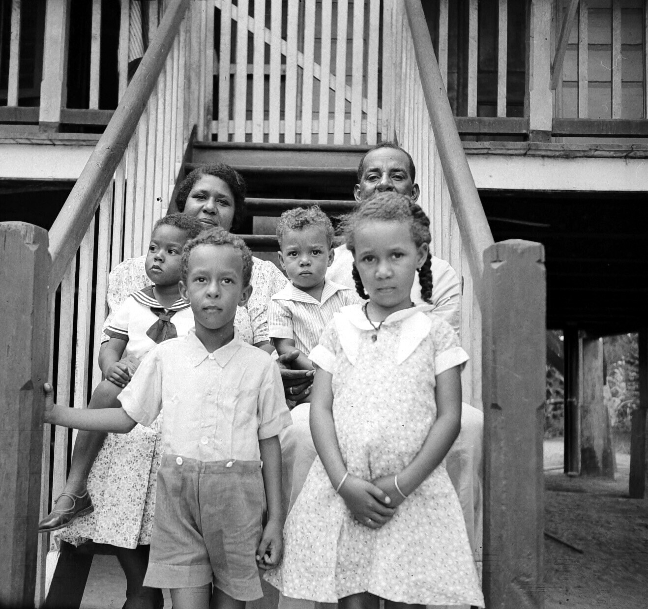 Het dorp Kadjoe, op de tafel liggen cassave koeken t...