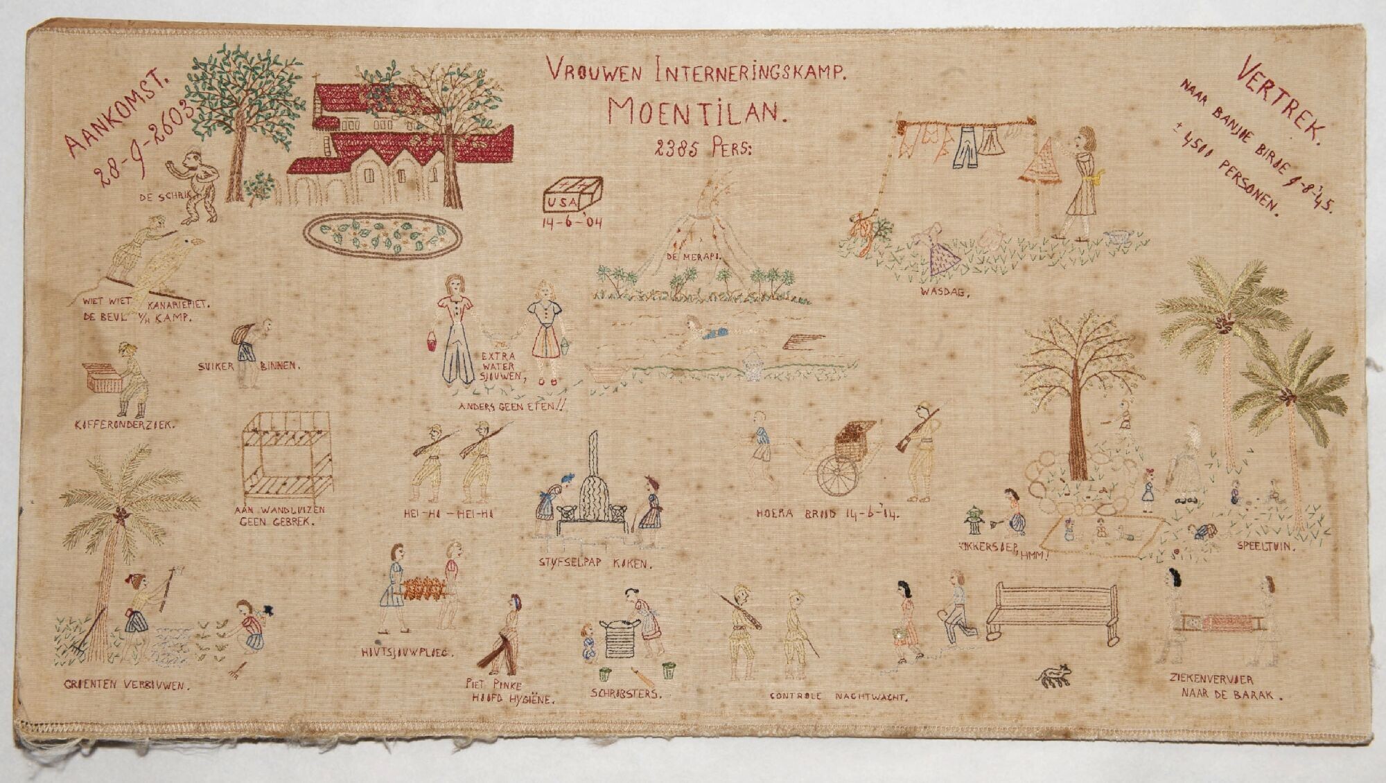 Geborduurde doek voorstellend het dagelijkse leven i...