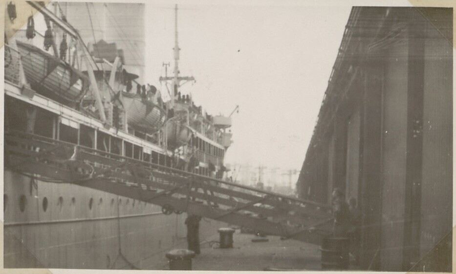 Zijaanzicht van passagierschip Johan de Witt met loo...