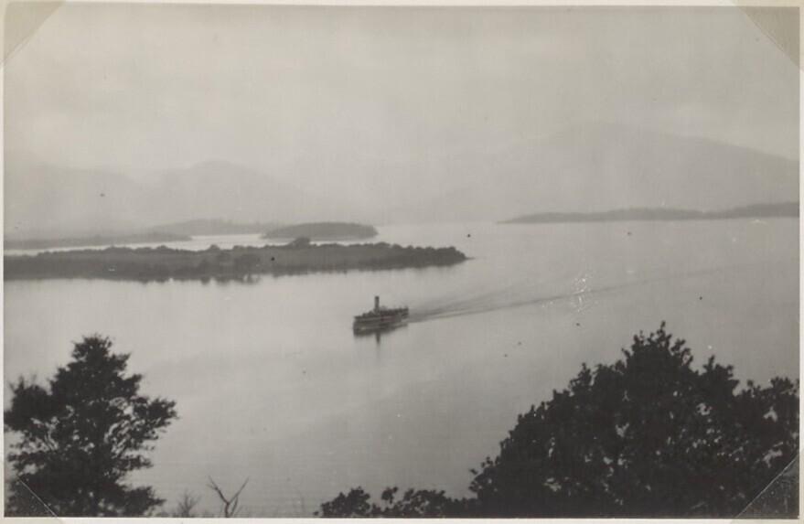Kanaalschip vaart langs de kust, Loch Lomond