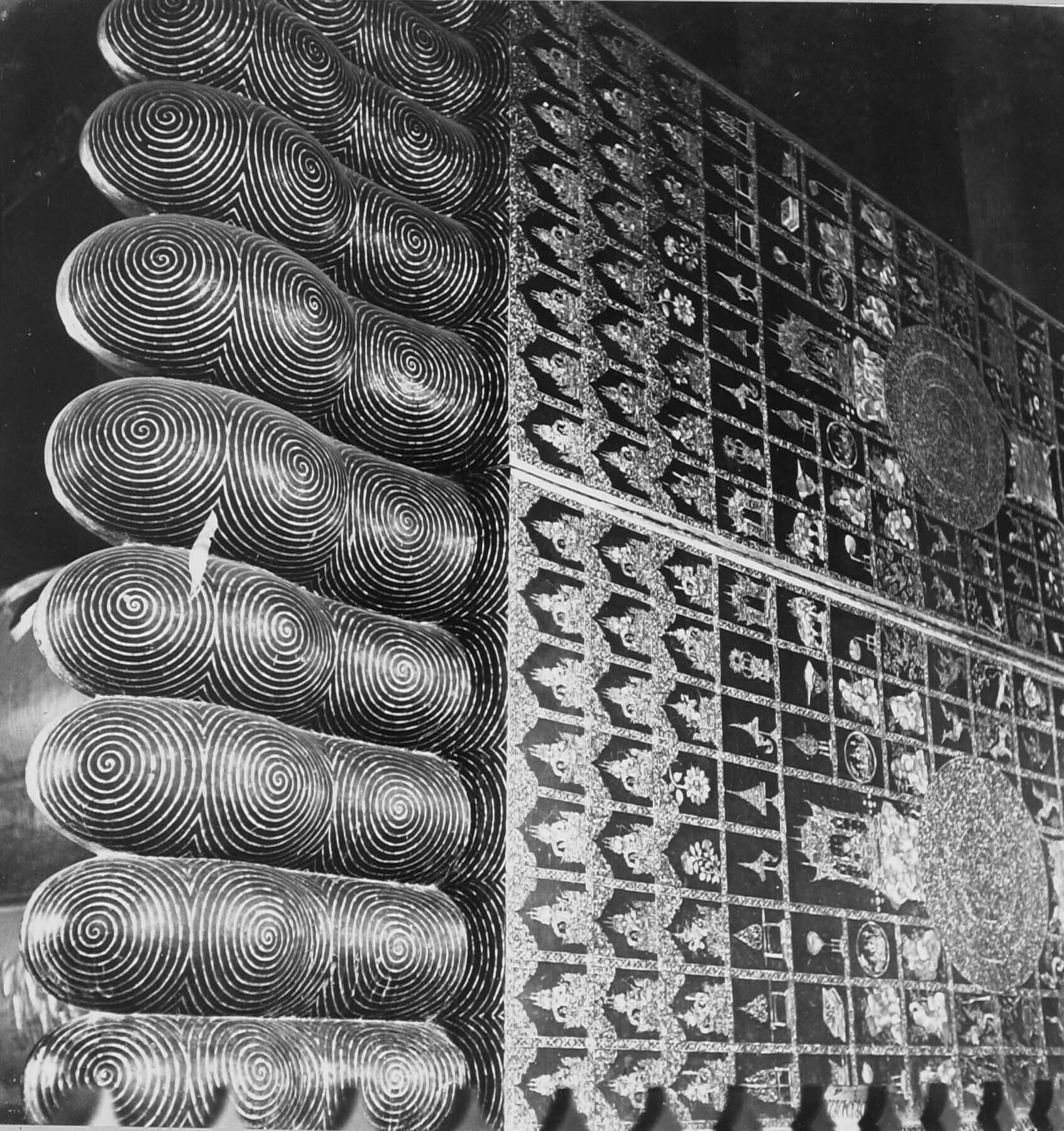 In de Temple of the Reclining Buddha. Detail van voe...