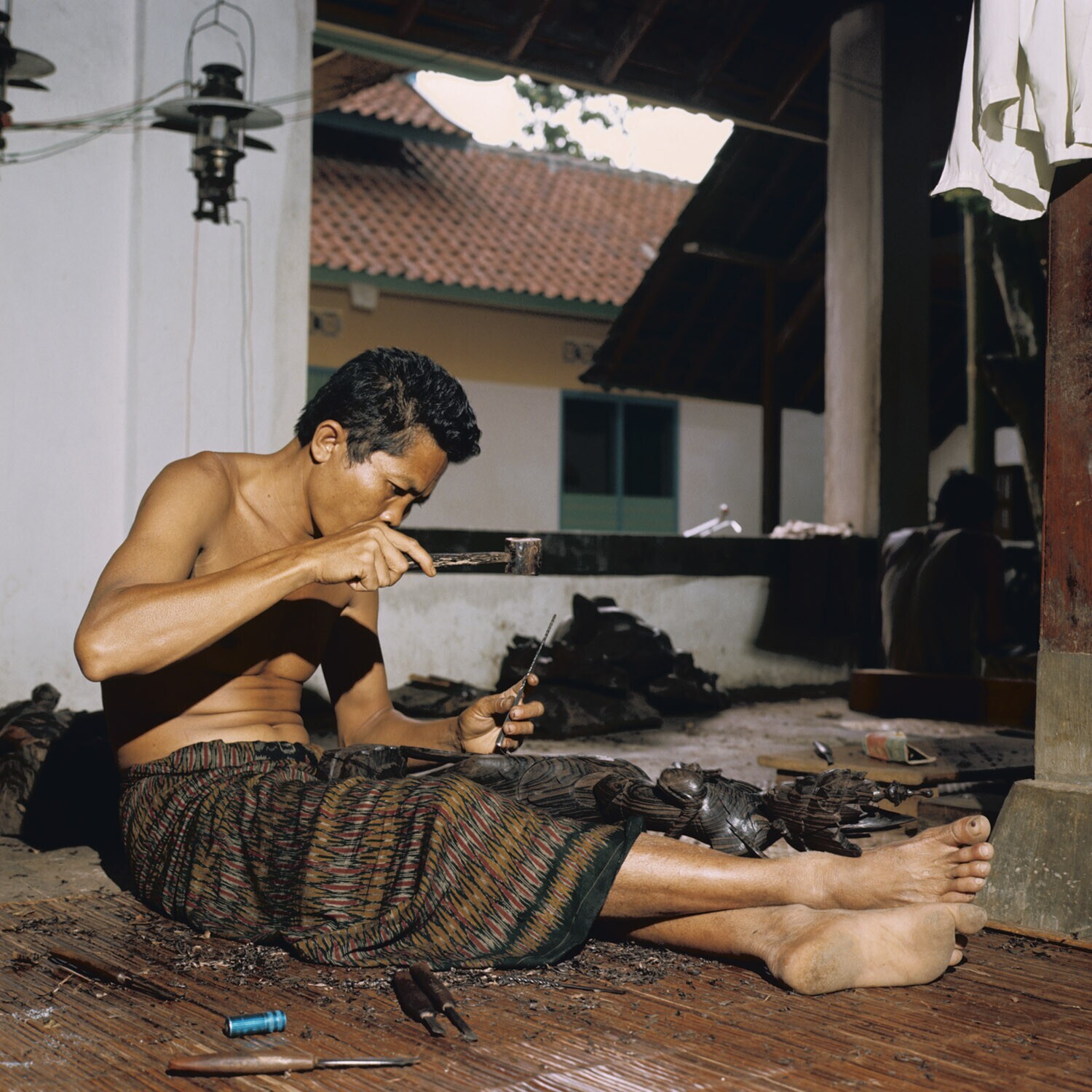 Balinese houtsnijder aan het werk