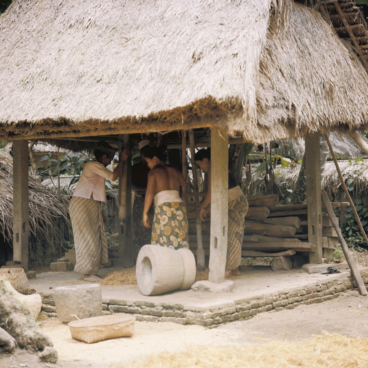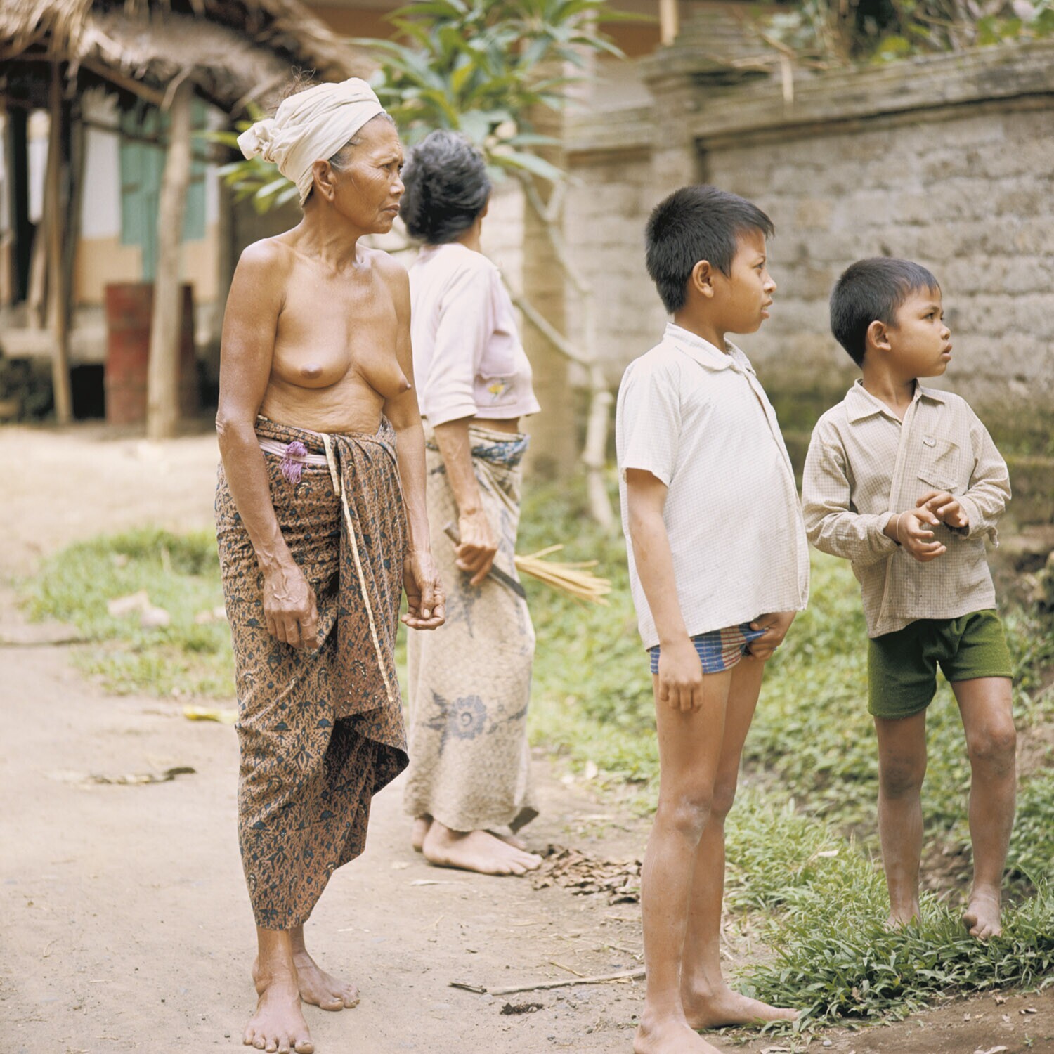 Vrouwen en kinderen in een dorp, Bali