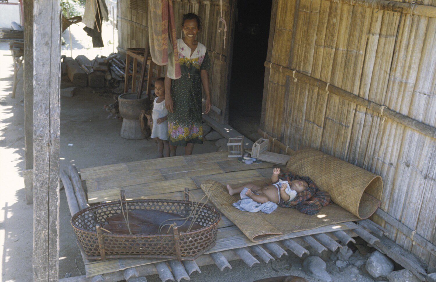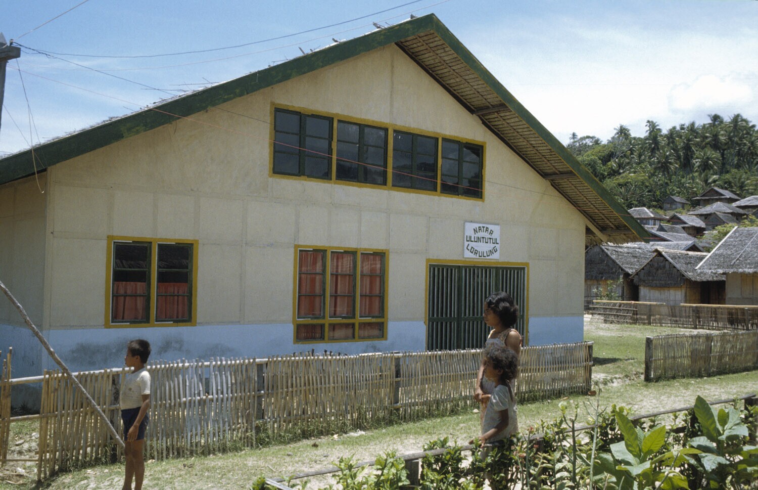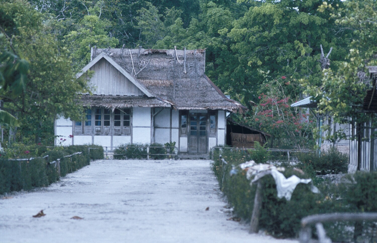 Dorpshuis in Lorulun op Tanimbar, Molukken.