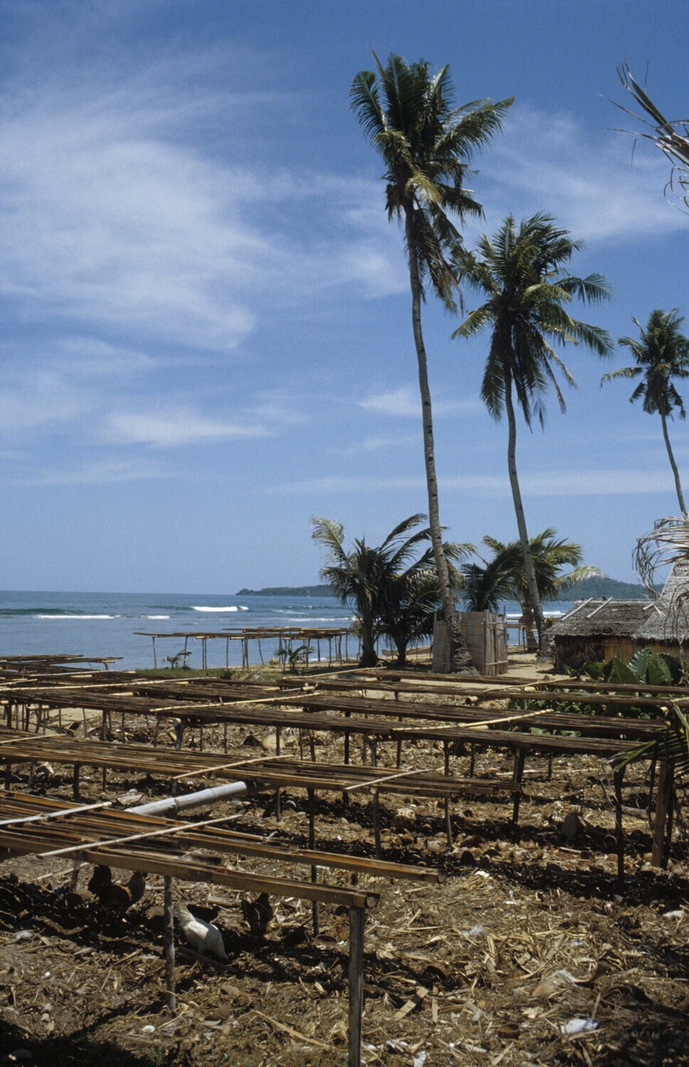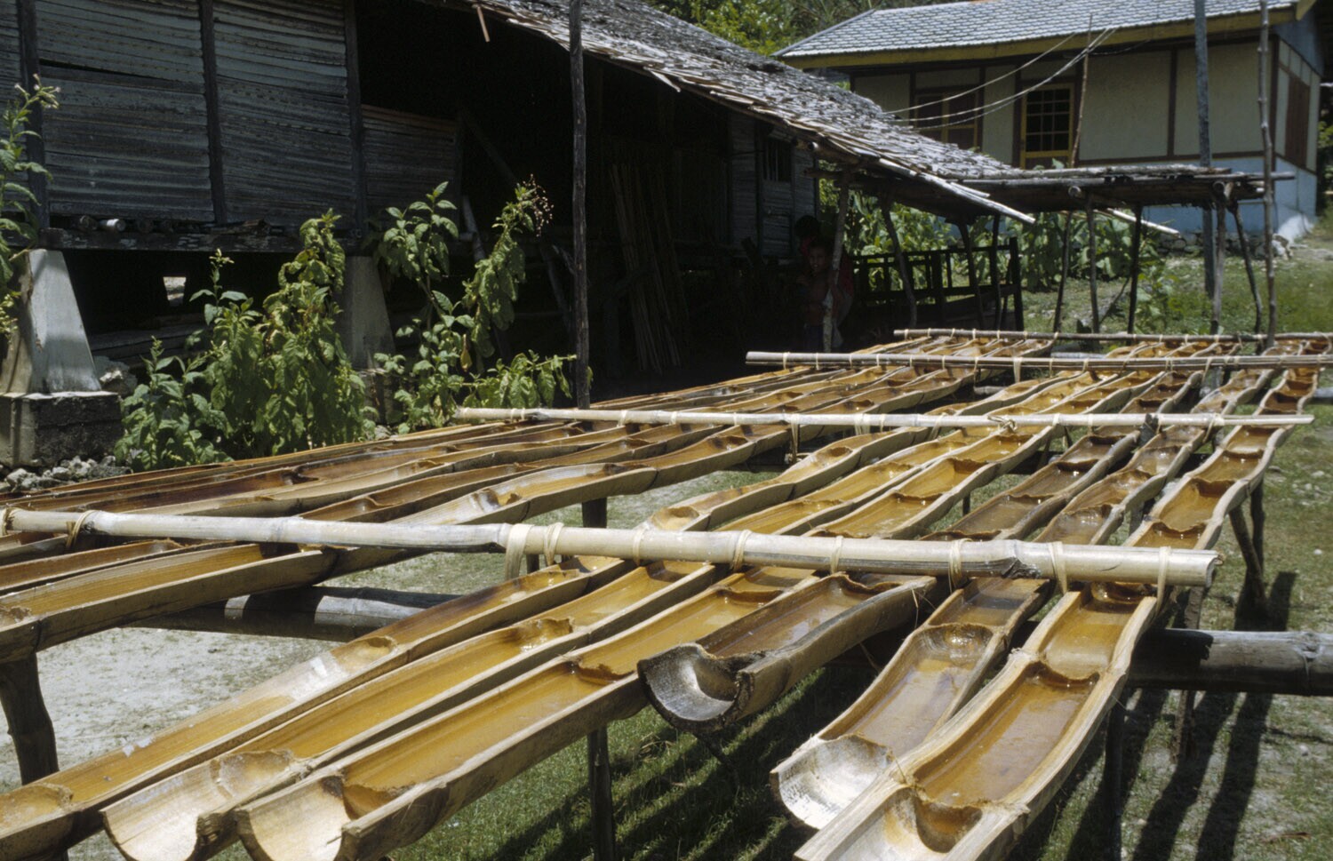 Zoutwinning: in gehalveerde bamboes wordt zeewater v...