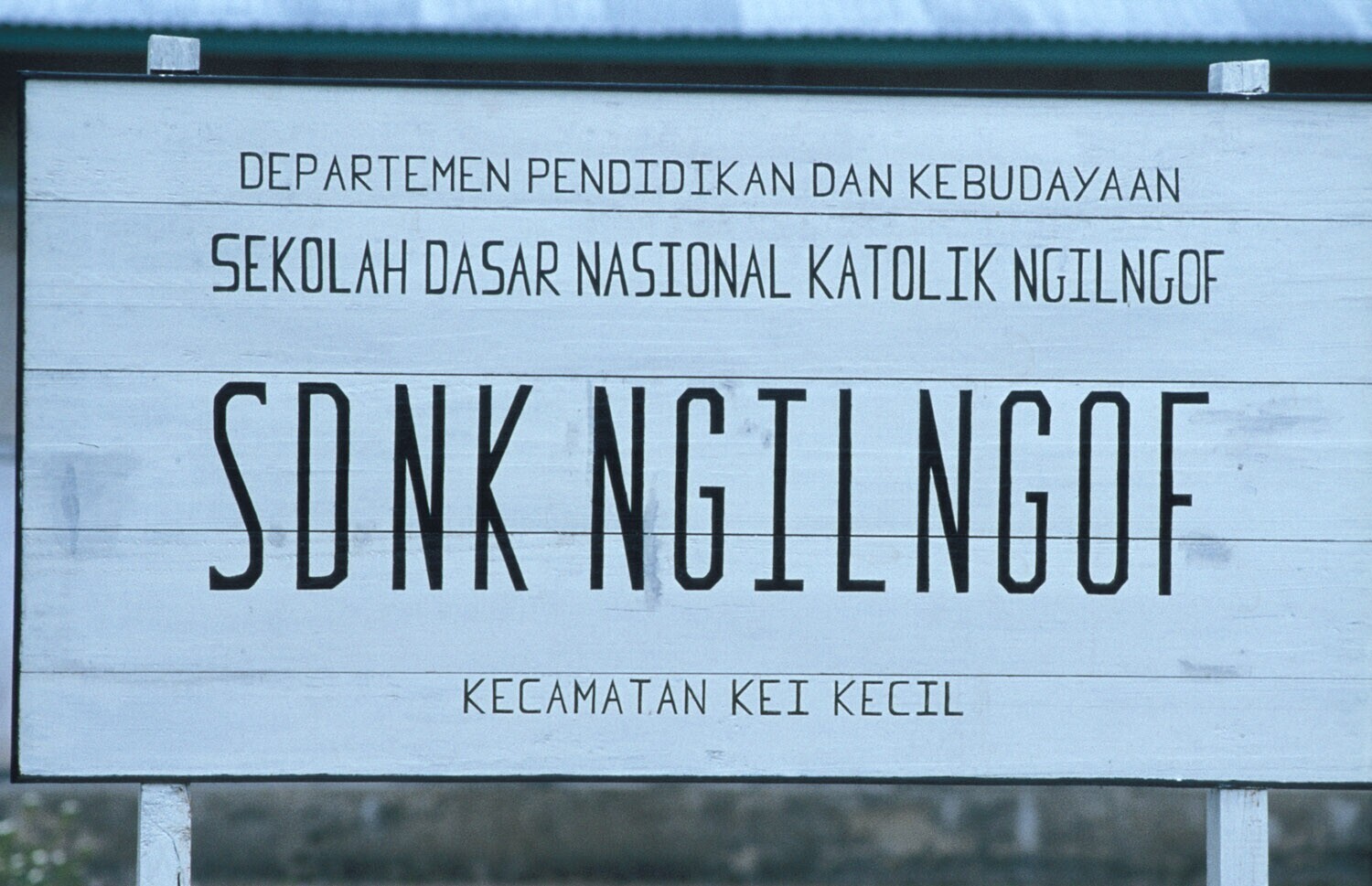 Bord voor de lagere school in Ngilngof op Kei, Moluk...
