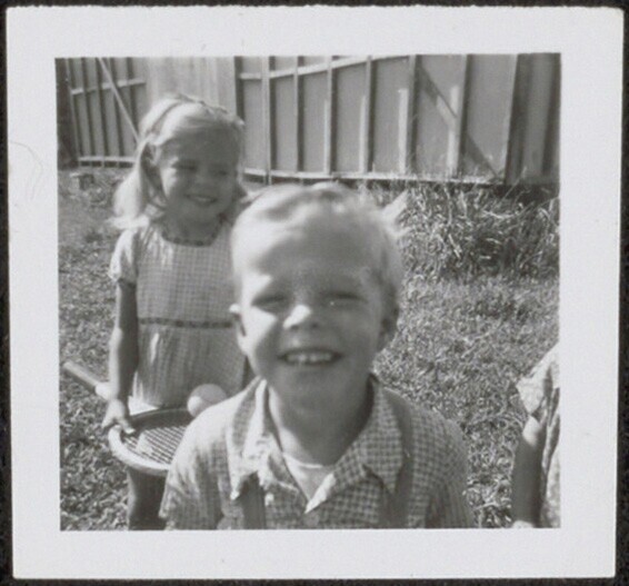 De kinderen van Familie Altman buitenspelend in de m...