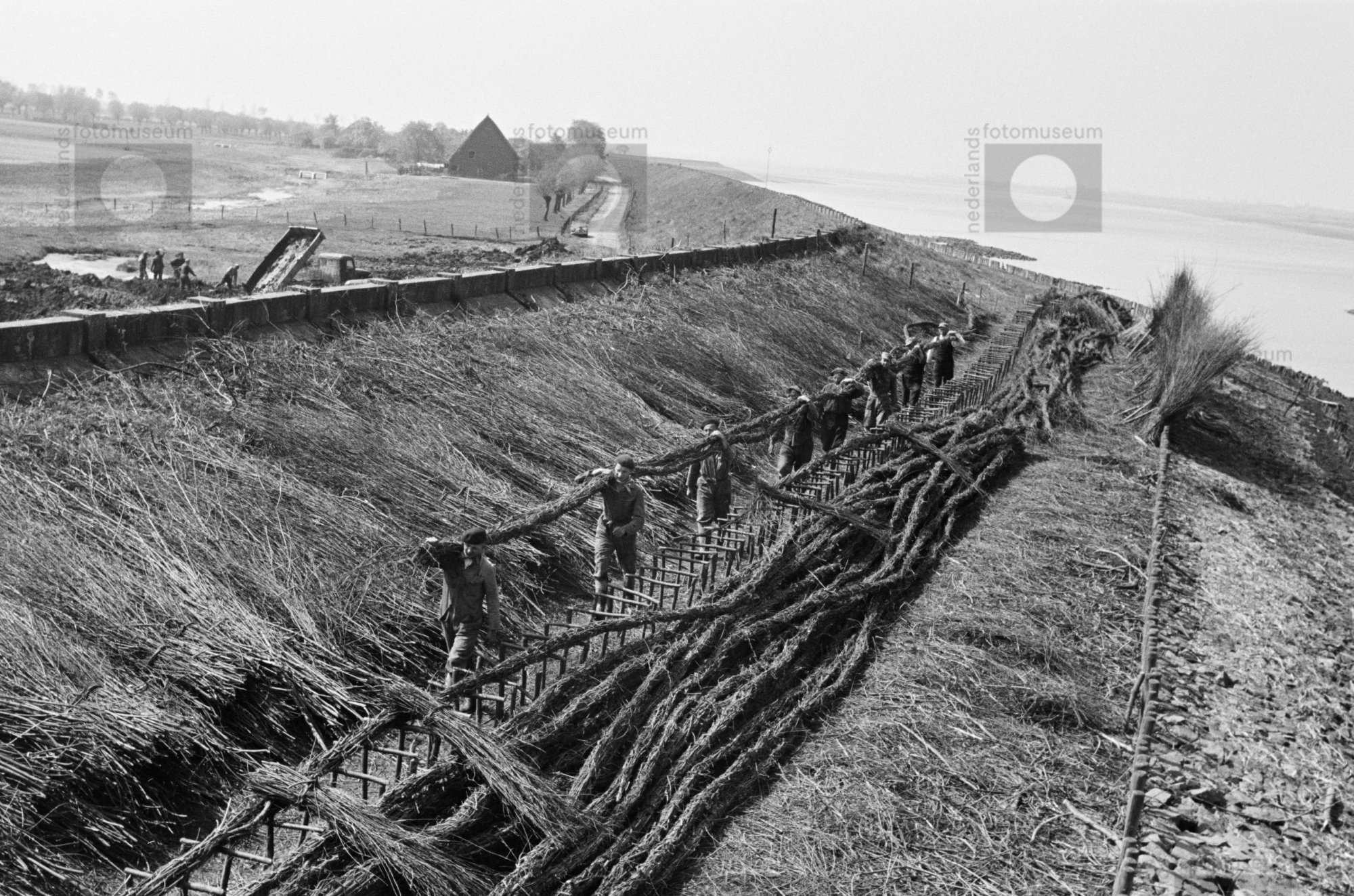 Aanleg van een dijk in Zeeuws-Vlaanderen (1952)