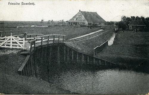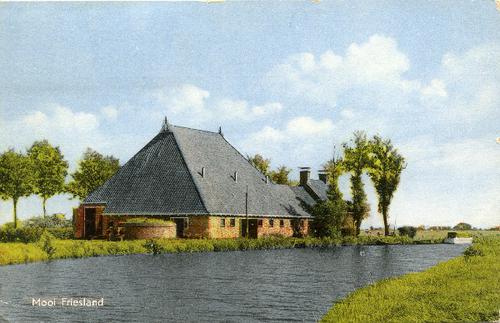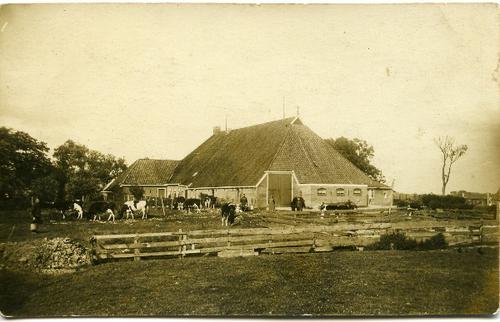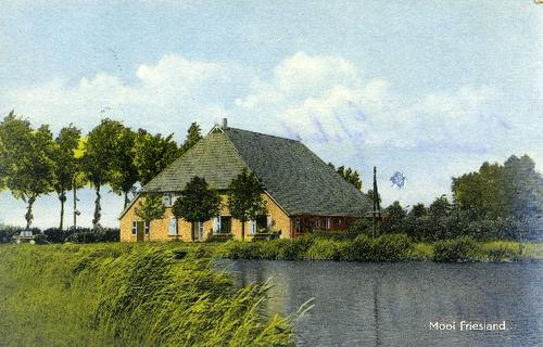 Prentbriefkaart in kleur van een stelpboerderij aan ...
