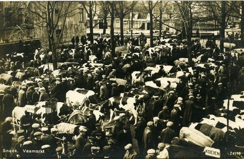Prentbriefkaart in zwart-wit van de veemarkt te Snee...