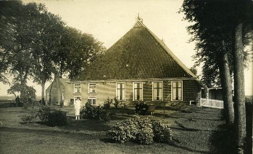 Prentbriefkaart in zwart-wit van een stelpboerderij ...