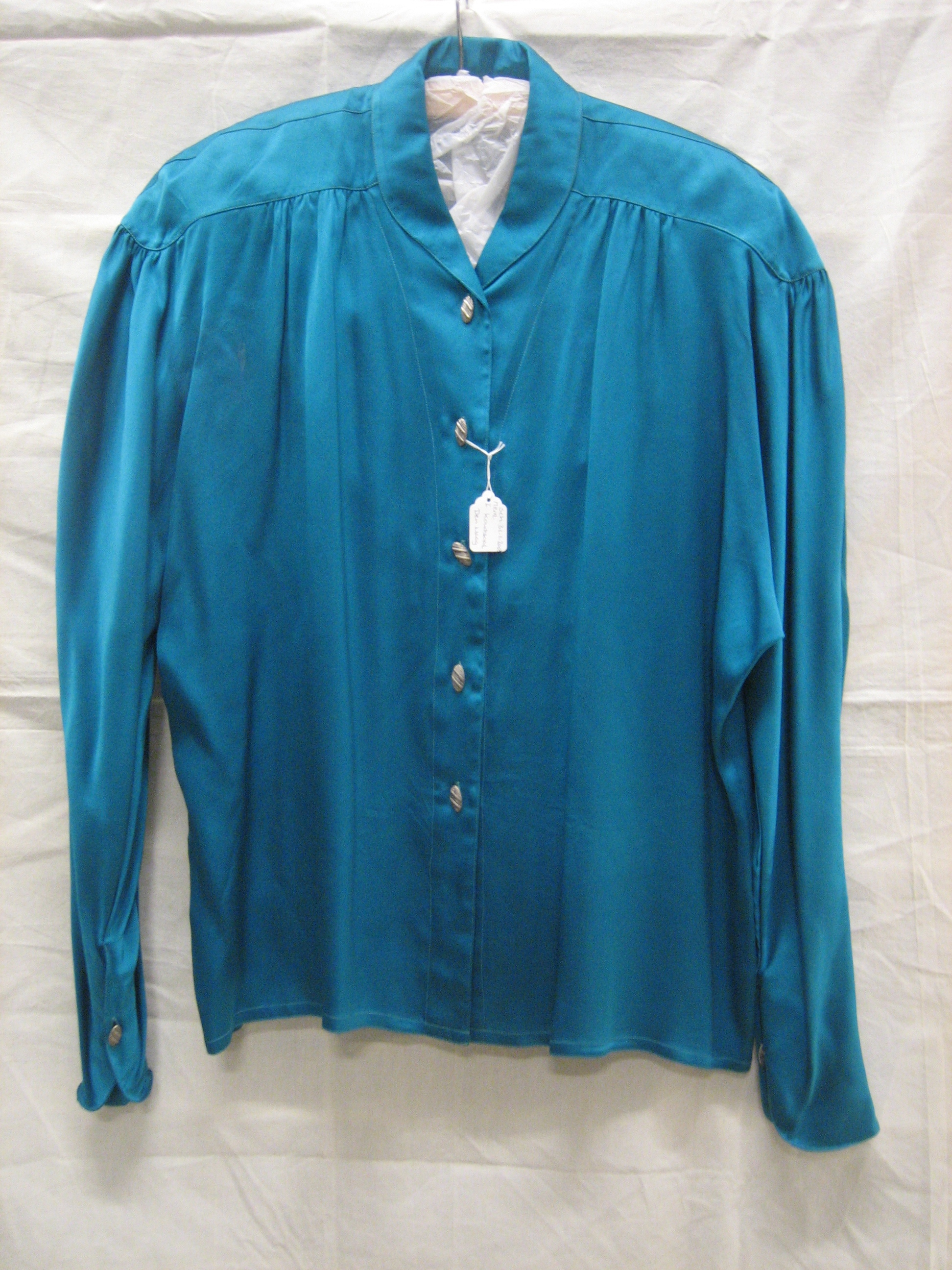 Blouse van blauwgroene crêpe satin, zijde, met metal...