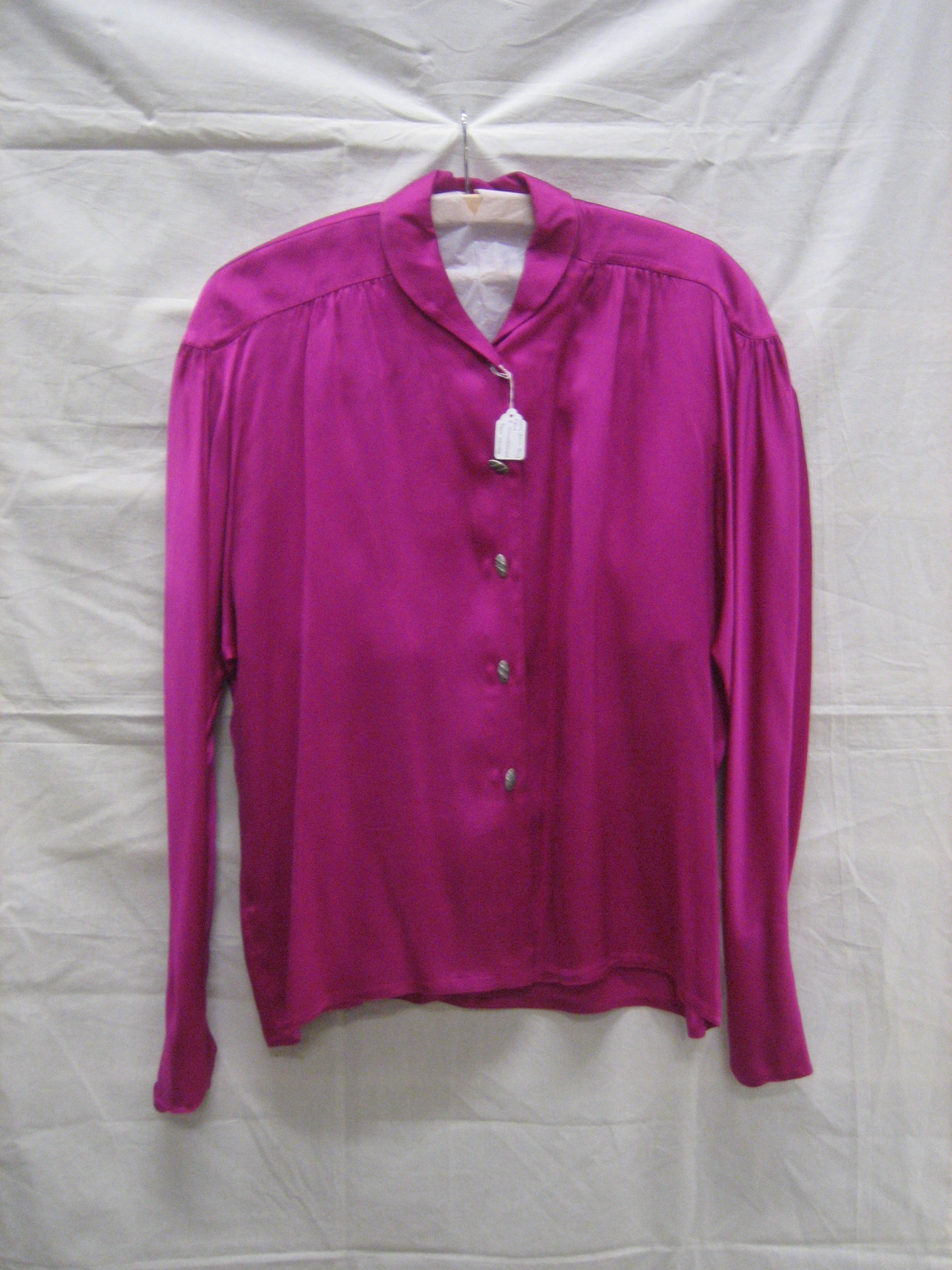 Blouse van funchsiaroze crêpe satin, zijde, met meta...