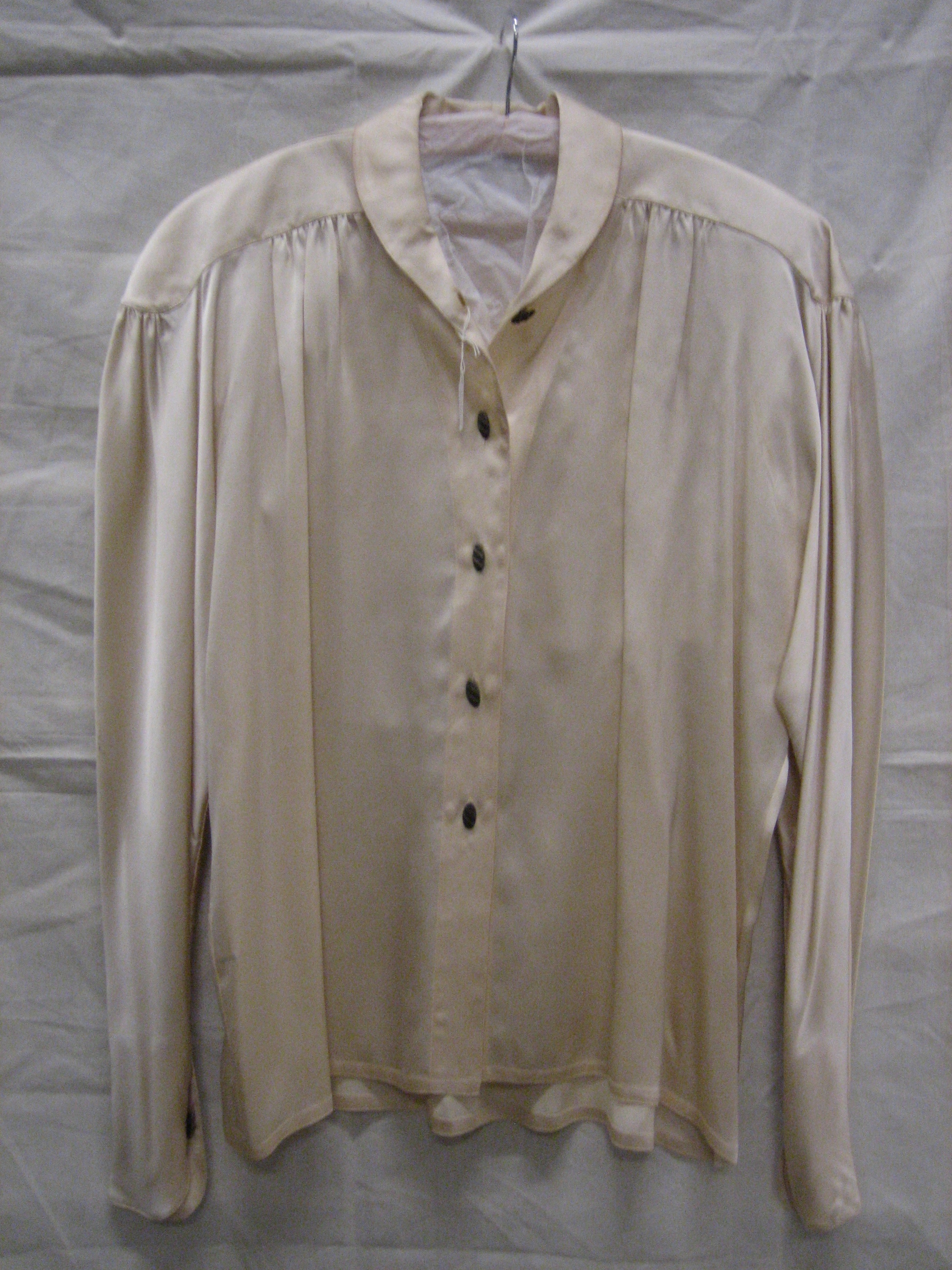 Blouse, van champagnekleurig crêpe satin, zijde, met...