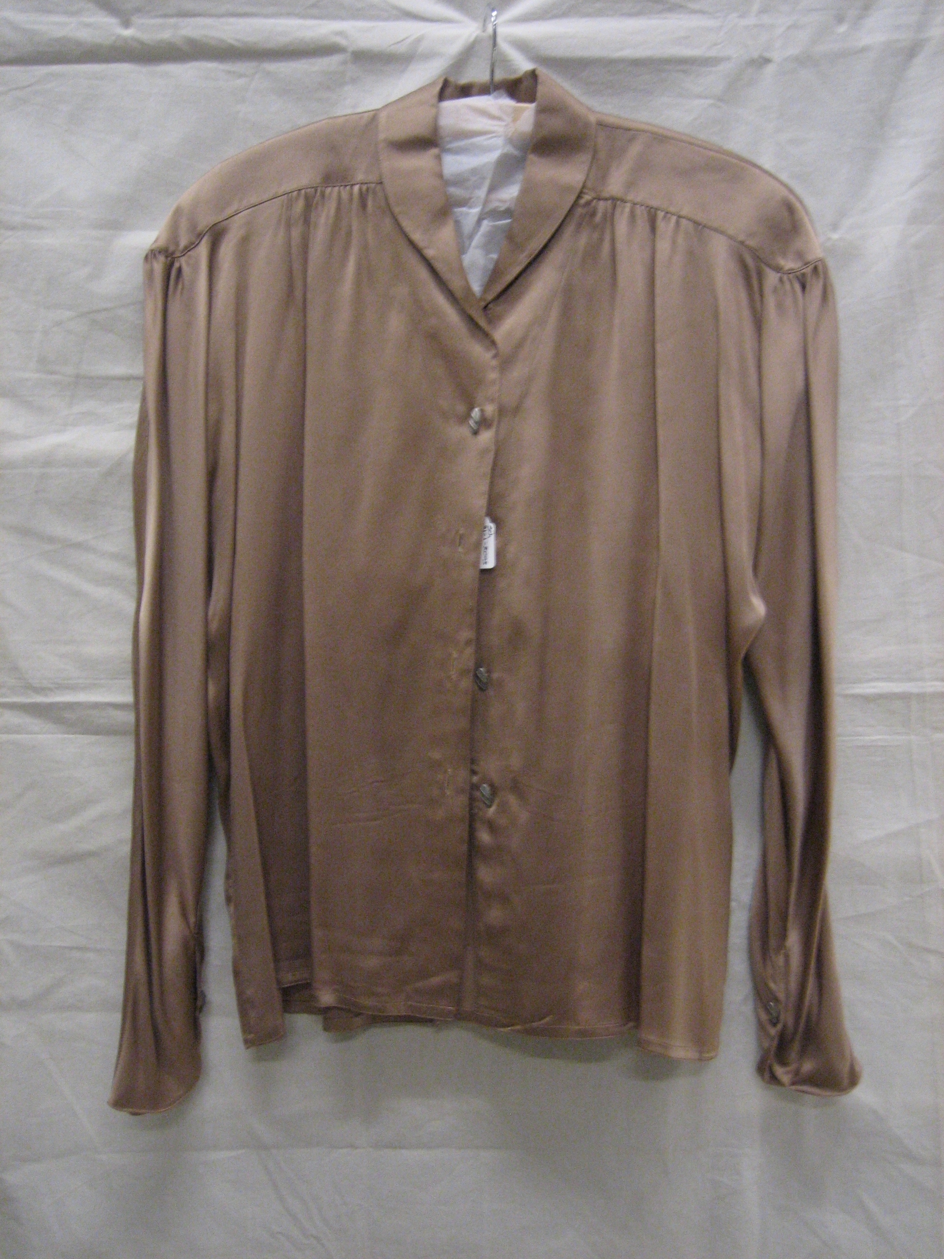 Blouse van lichtbruin, taupekleurig crêpe satin zijd...