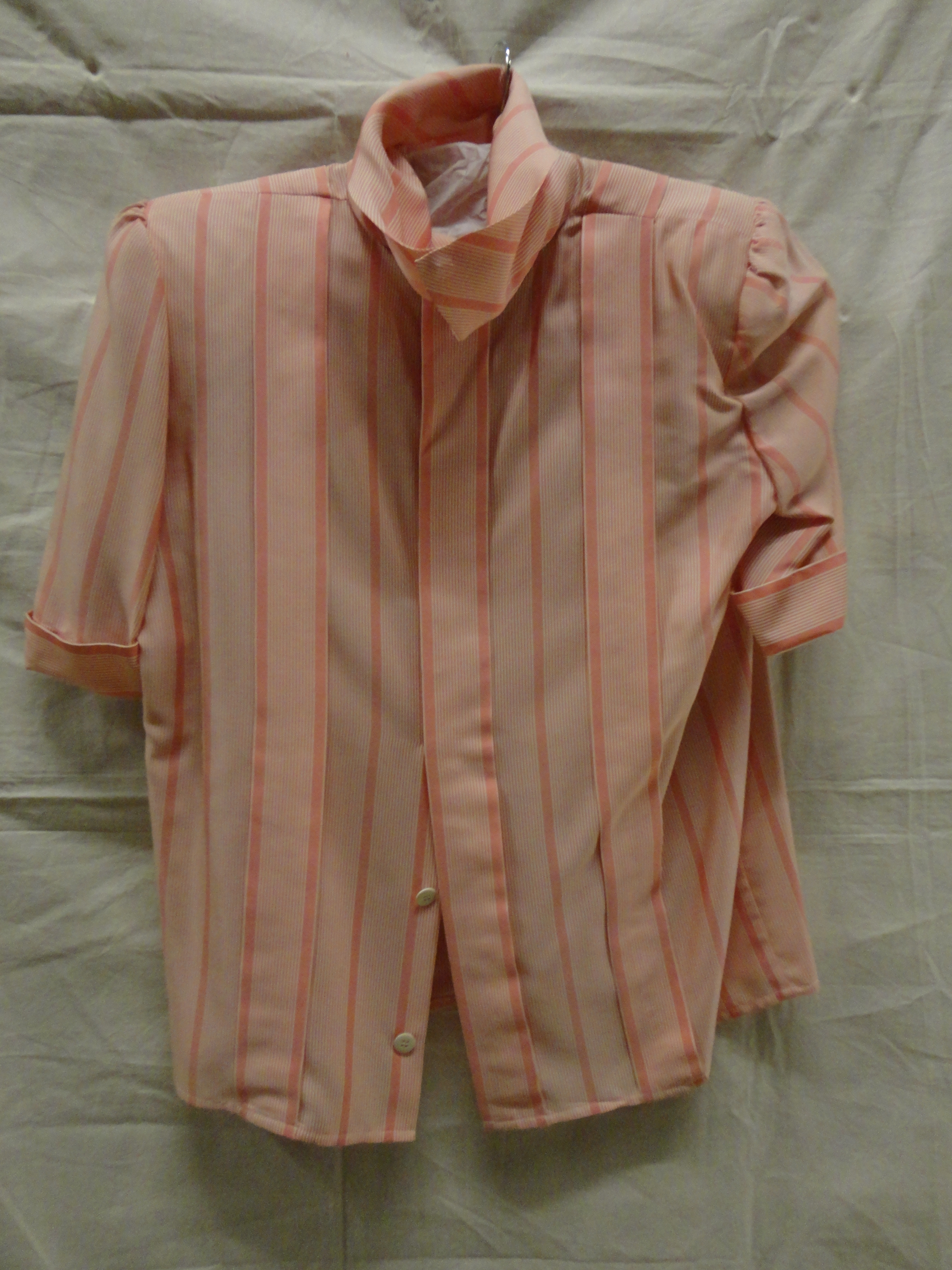 Blouse van wit/roze gestreept zijdemengsel met dikke...