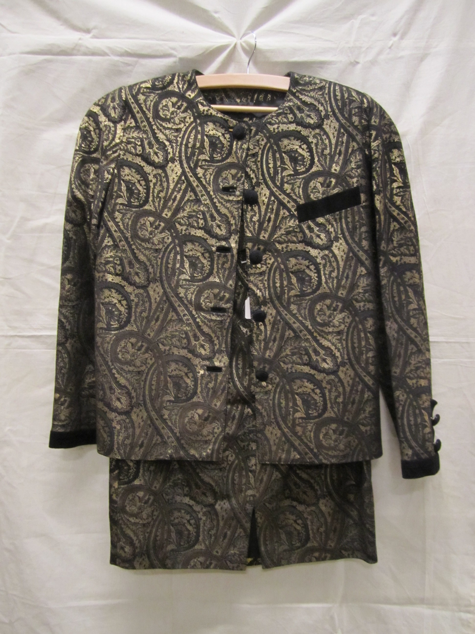 Mantelpak van brokaat in de kleuren metallic groen e...