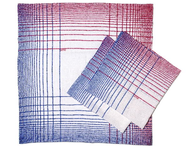 Een bijna vierkante theedoek of glazendoek, met inge...