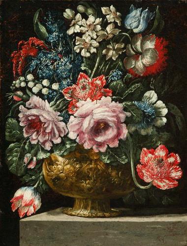 Bloemen in een verguld zilveren vaas