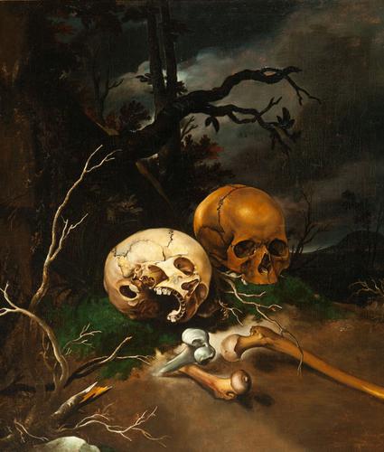 Somber duinlandschap met twee doodskoppen