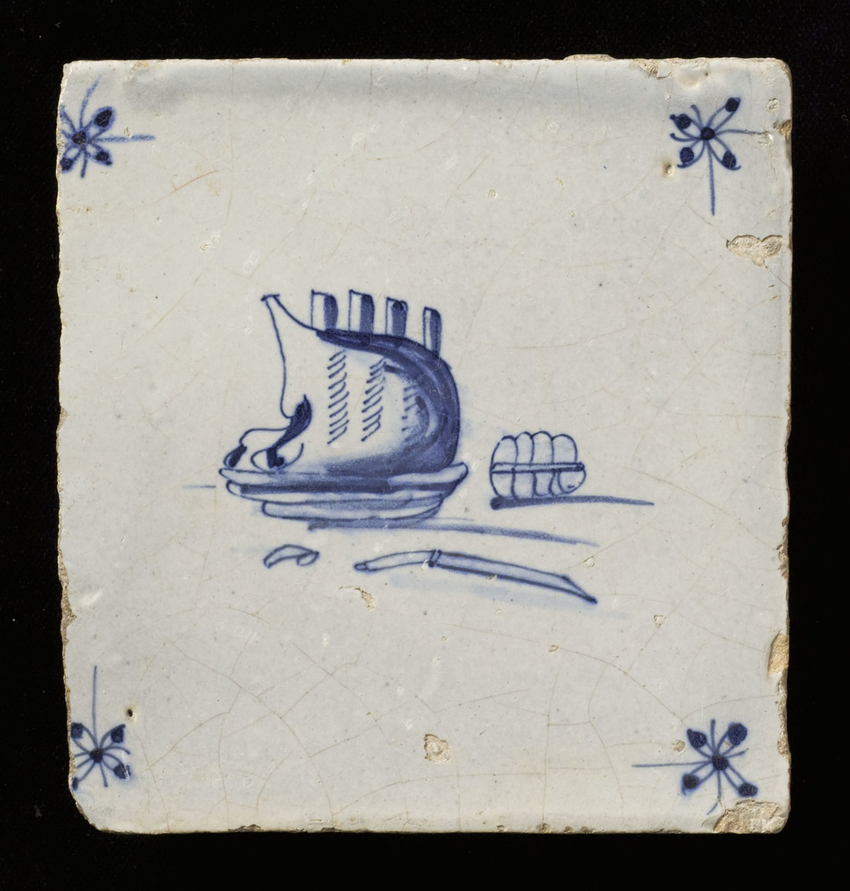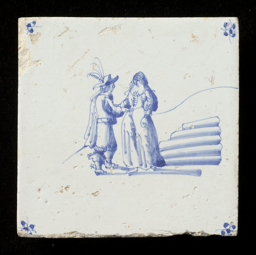 tegel van aardewerk in onderglazuur, voorstellende: ...