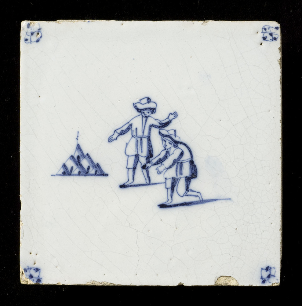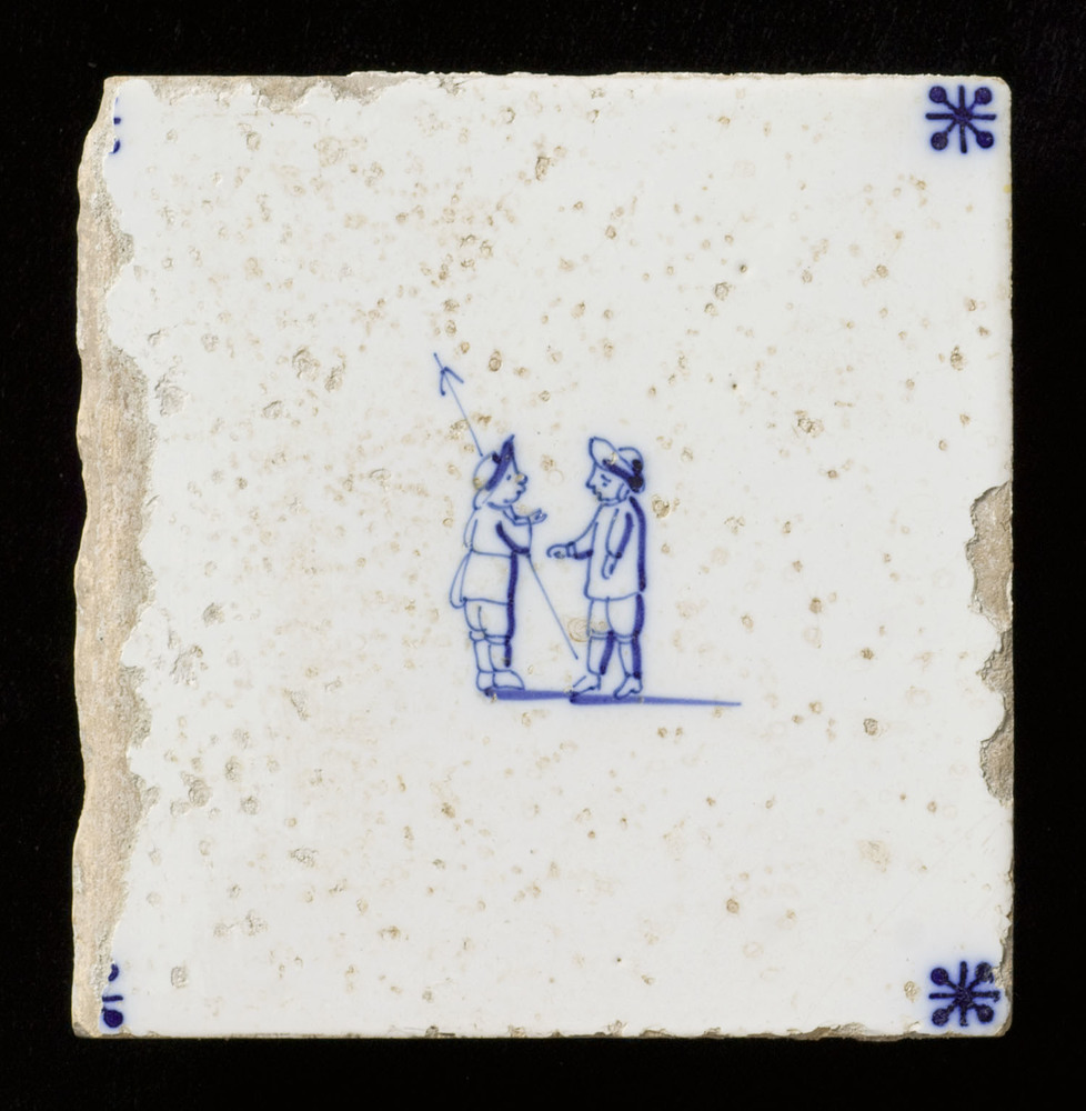 Tegel in tinglazuur, met voorstelling: kinderspel en...