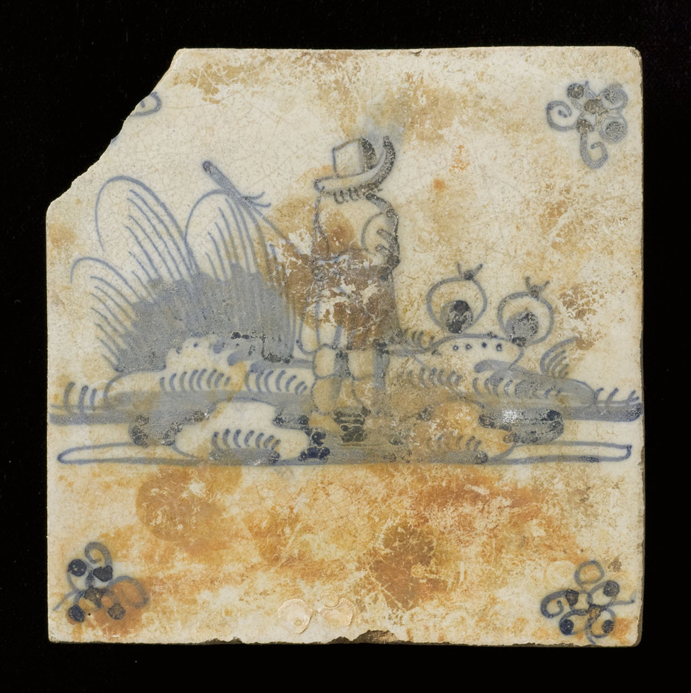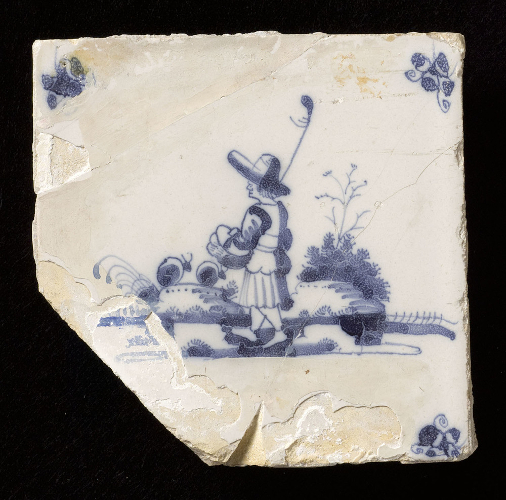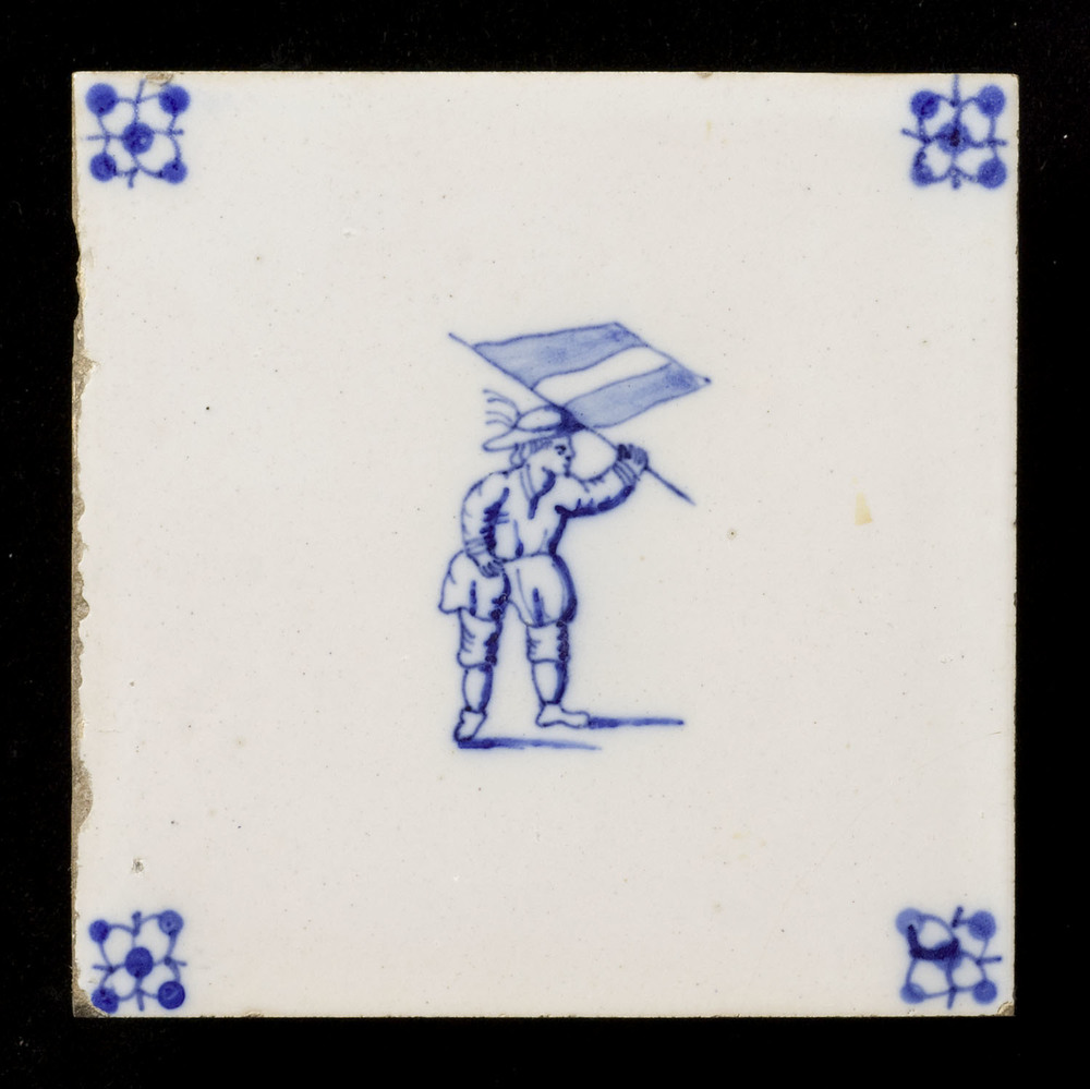 Tegel van keramiek met tinglazuur, voorstellende: he...