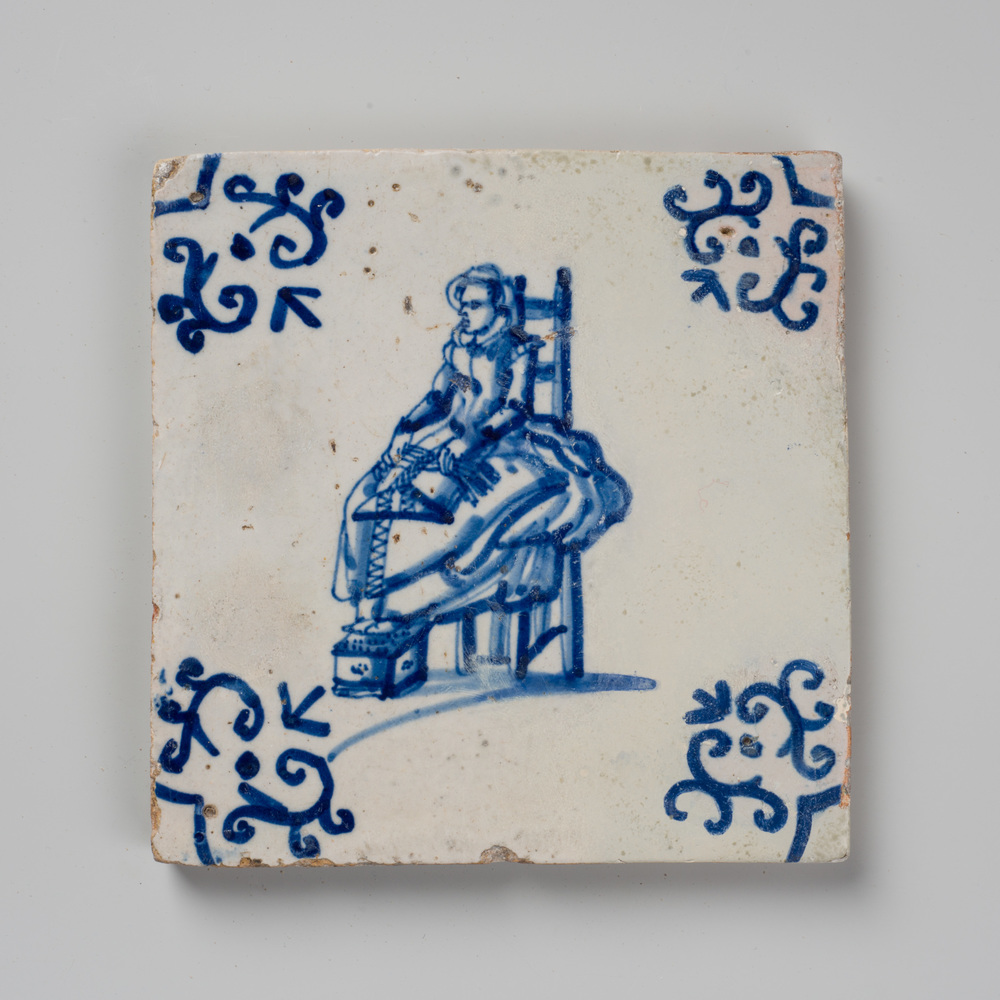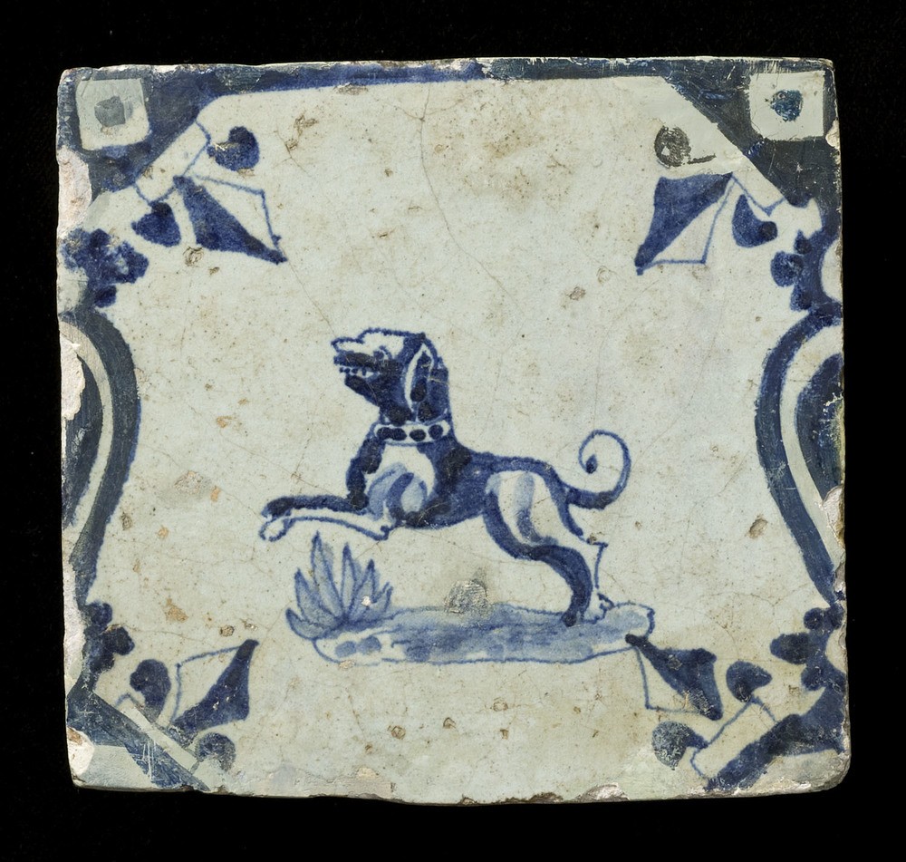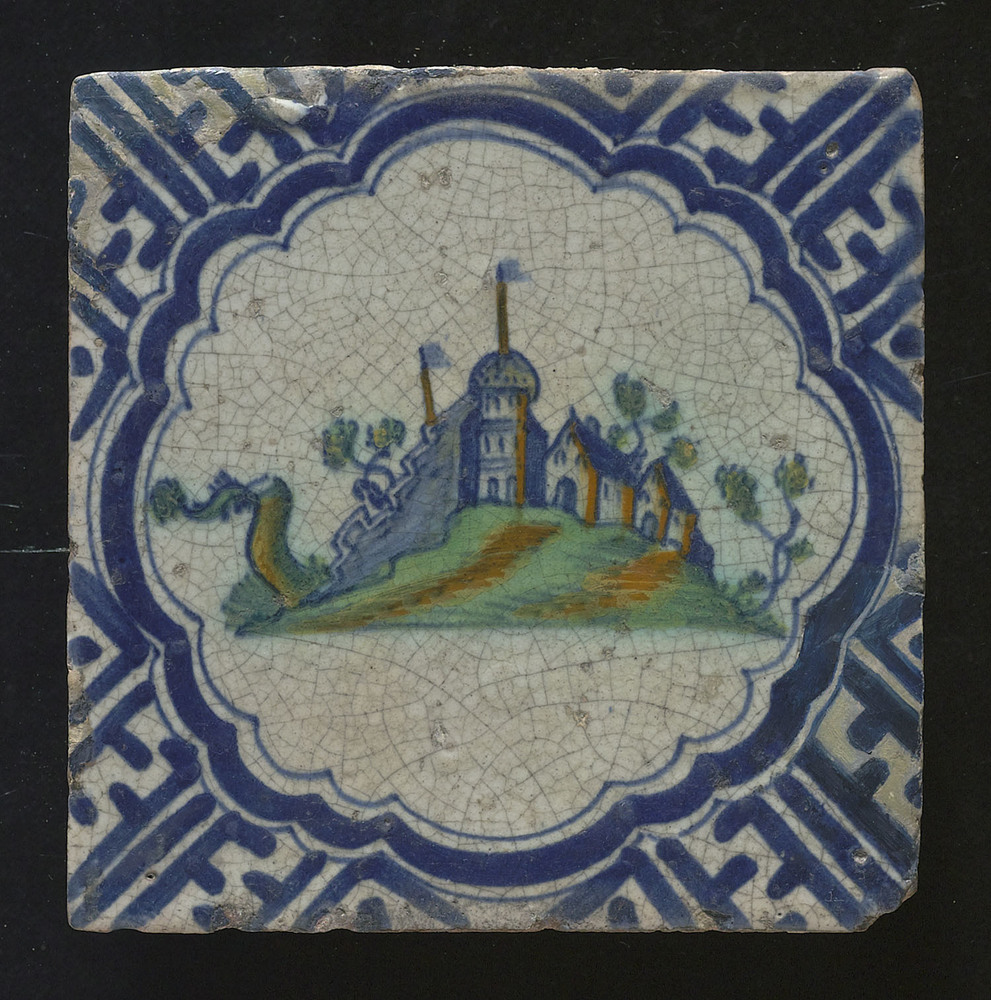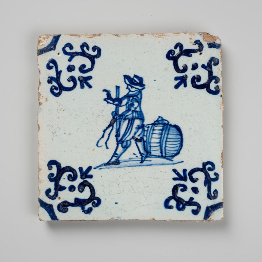 Tegel van keramiek met tinglazuur, voorstellende: he...
