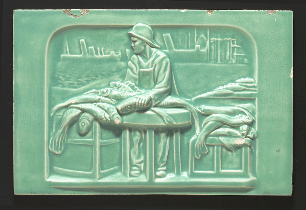 Tegelplaat van keramiek, onderglazuur, voorstellende...