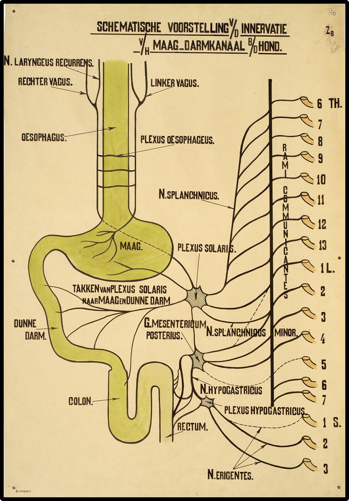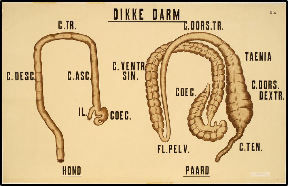 Verblijfduur van voedsel in het darmkanaal van de hond