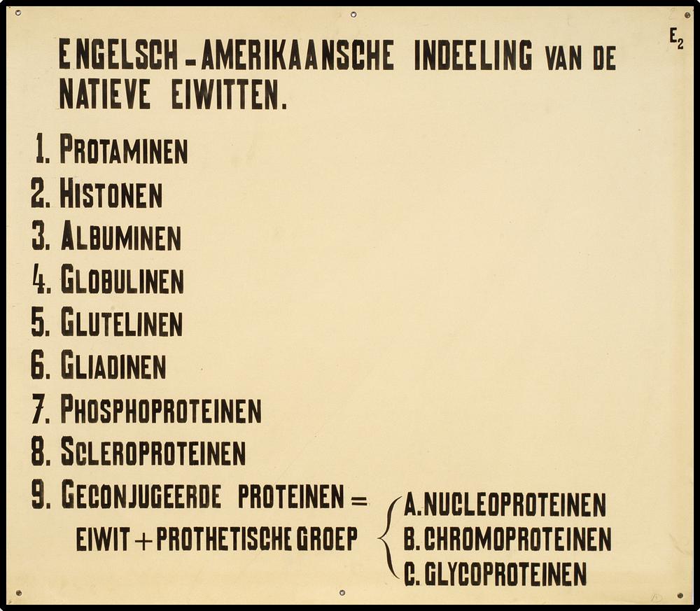 Onderwijsplaat met tabel m.b.t. eiwitten