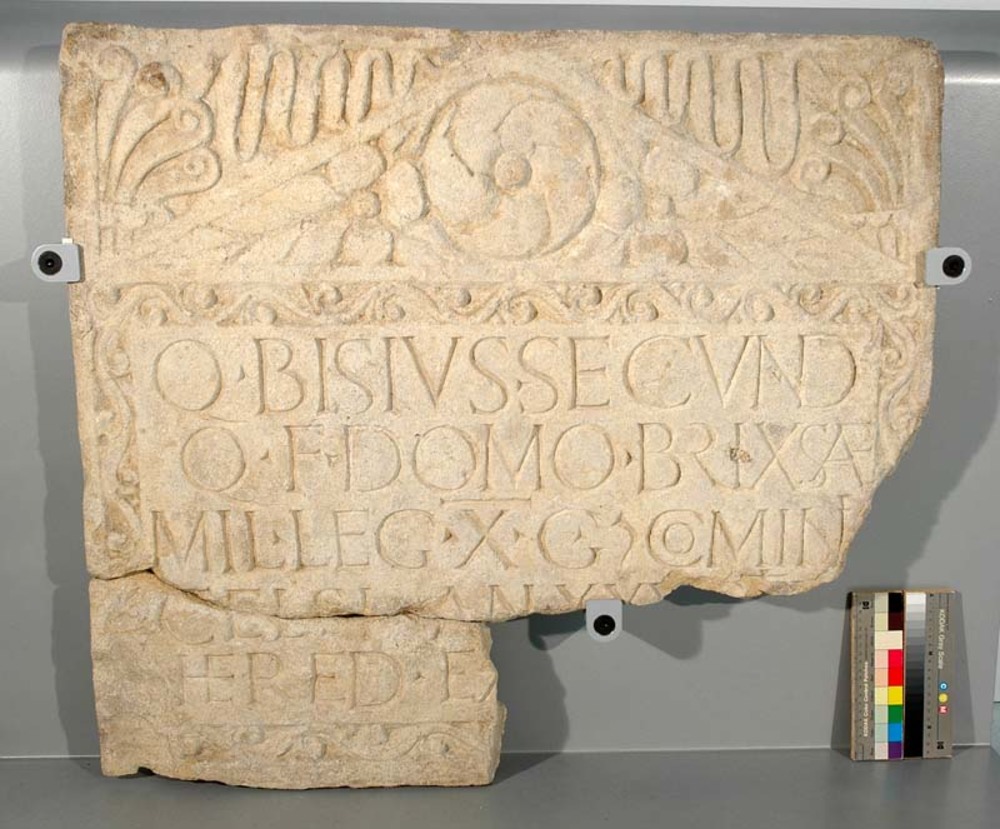 Kalkstenen grafsteen uit de Romeinse tijd, van Quint...