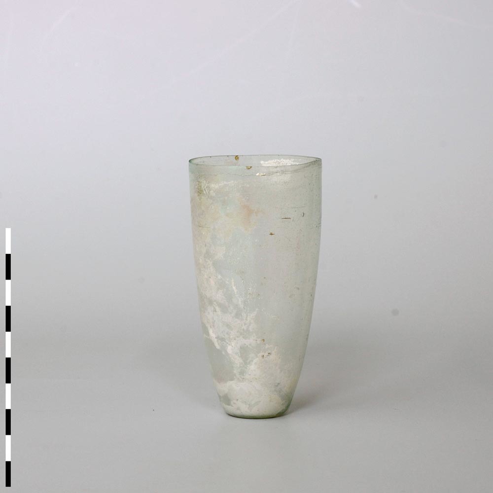 Beker van dun kleurloos glas uit de Romeinse tijd