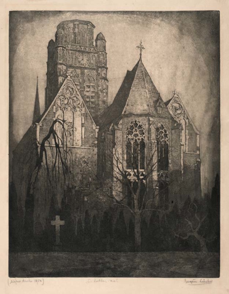 Drukplaat van de ets 'De Dom' aan de Steenstraat