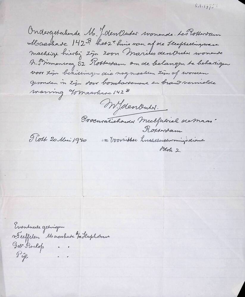 Handgeschreven brief van M.J. Outer