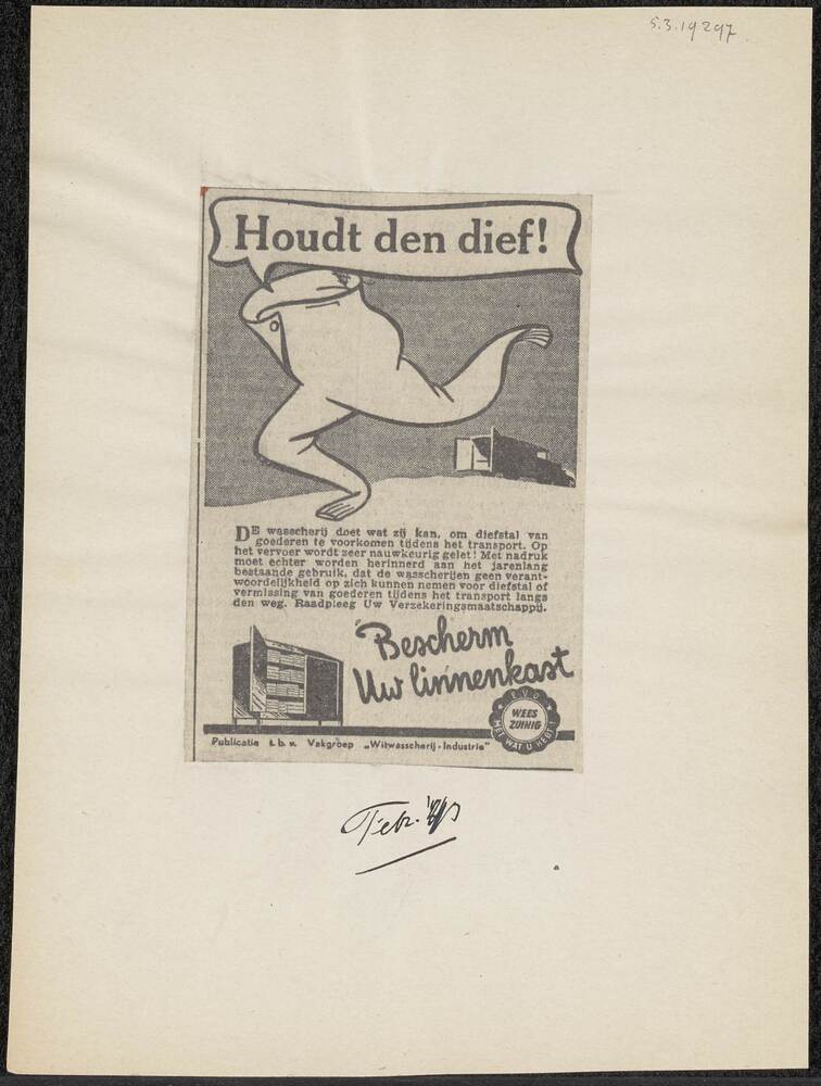 Vel met opgeplakte advertentie: "Houdt den dief!" me...