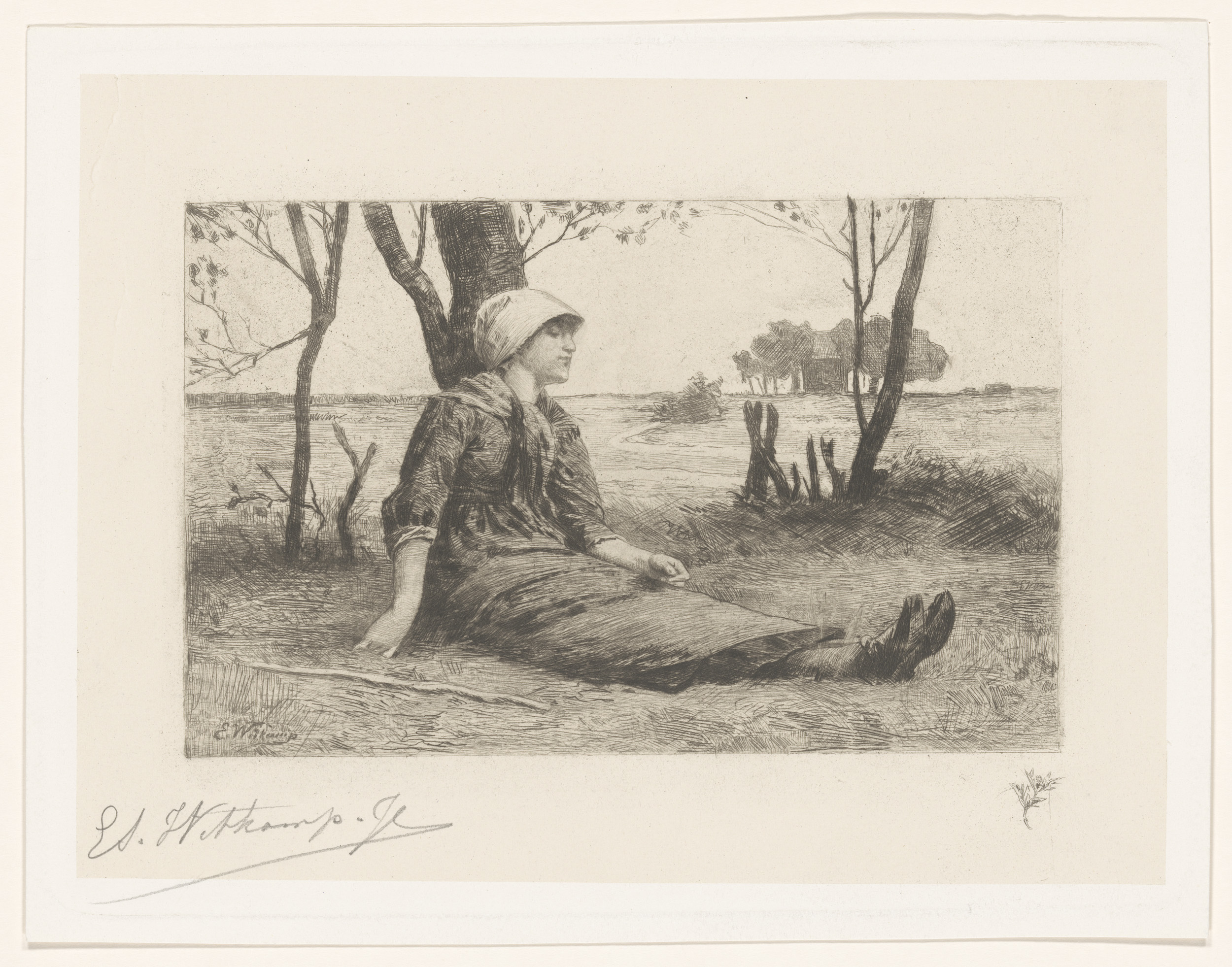 Zittende vrouw tegen een boom