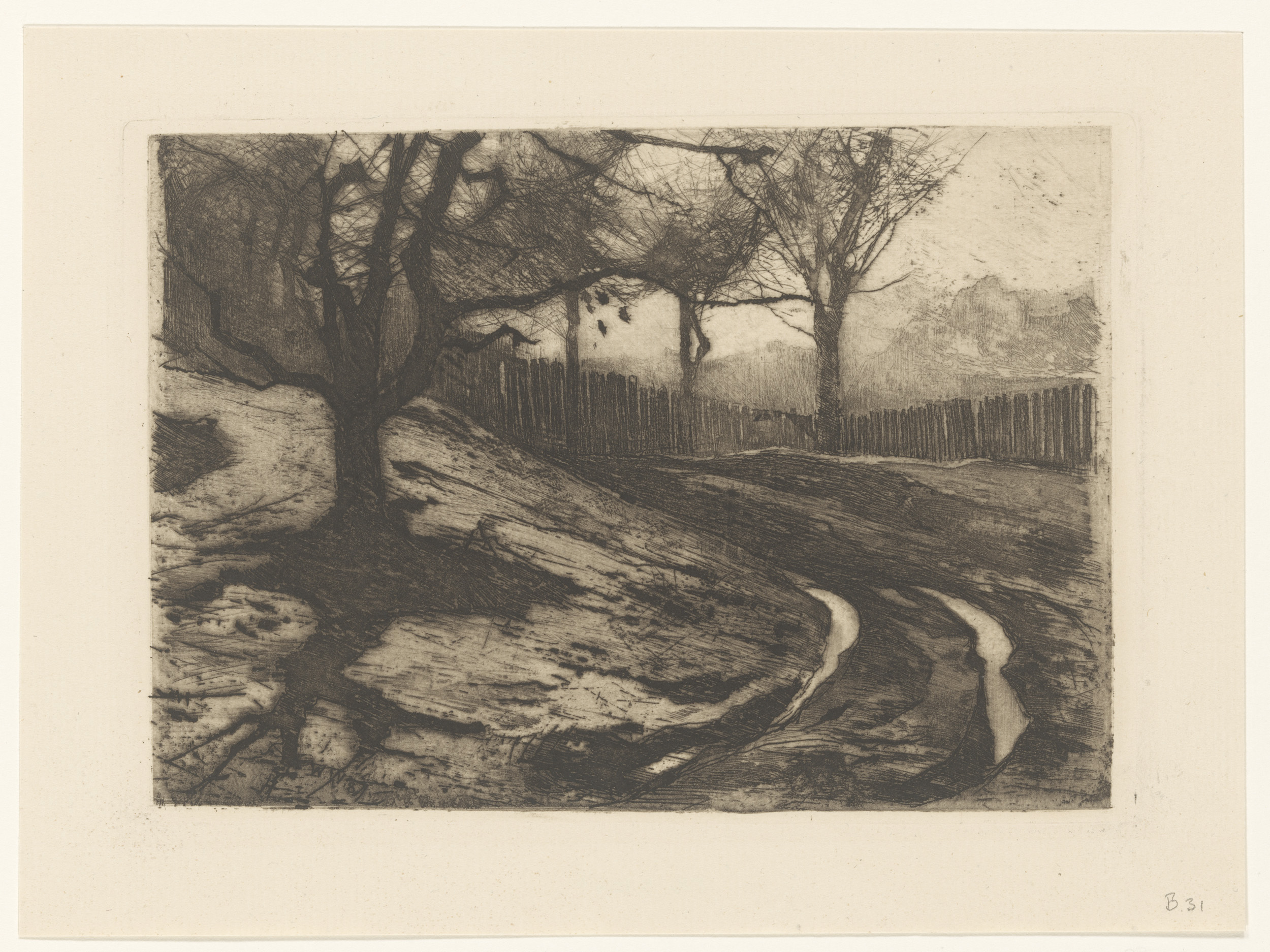 Landschap met bomen en omheining