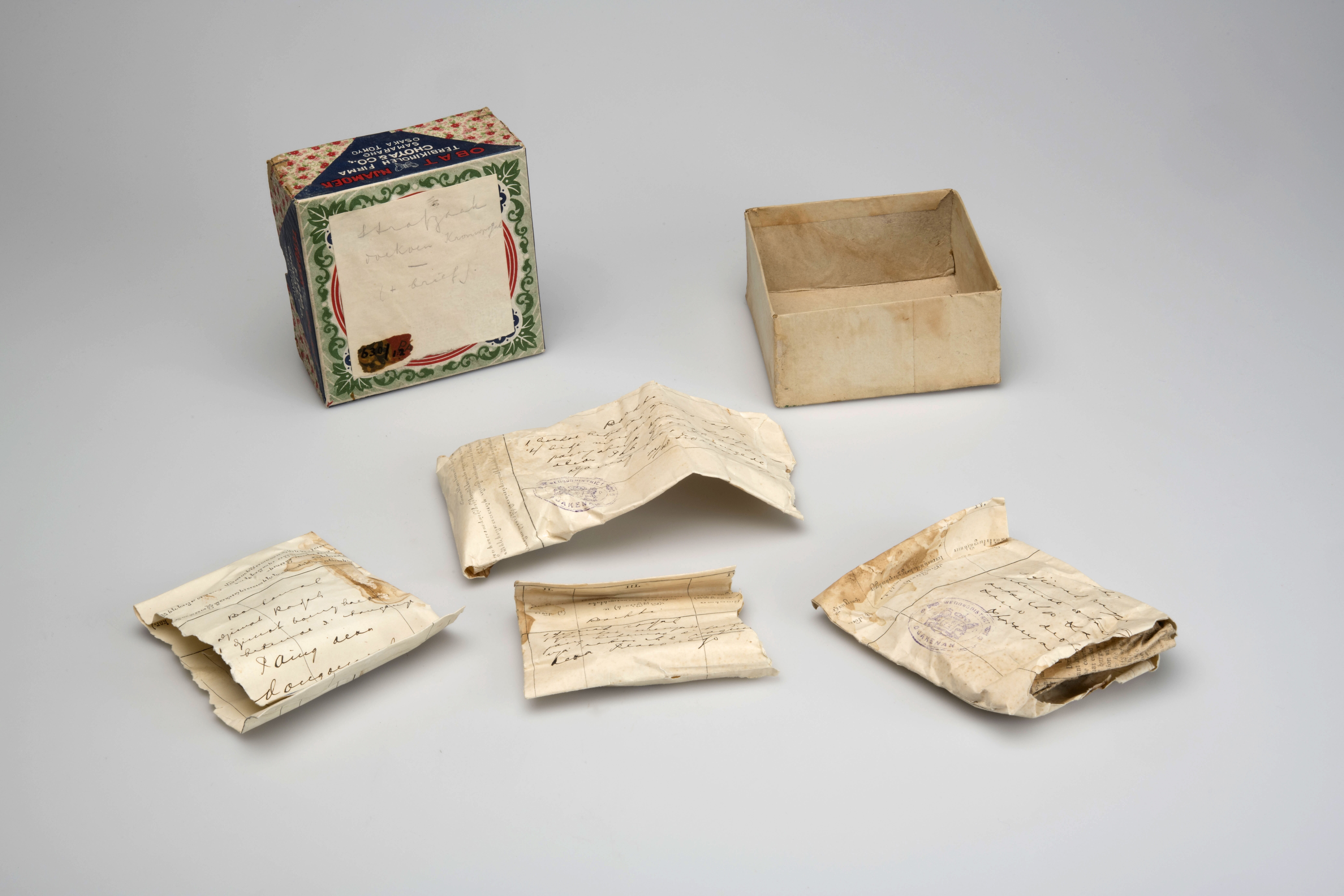 Doos met amuletten bijbehorend schrift