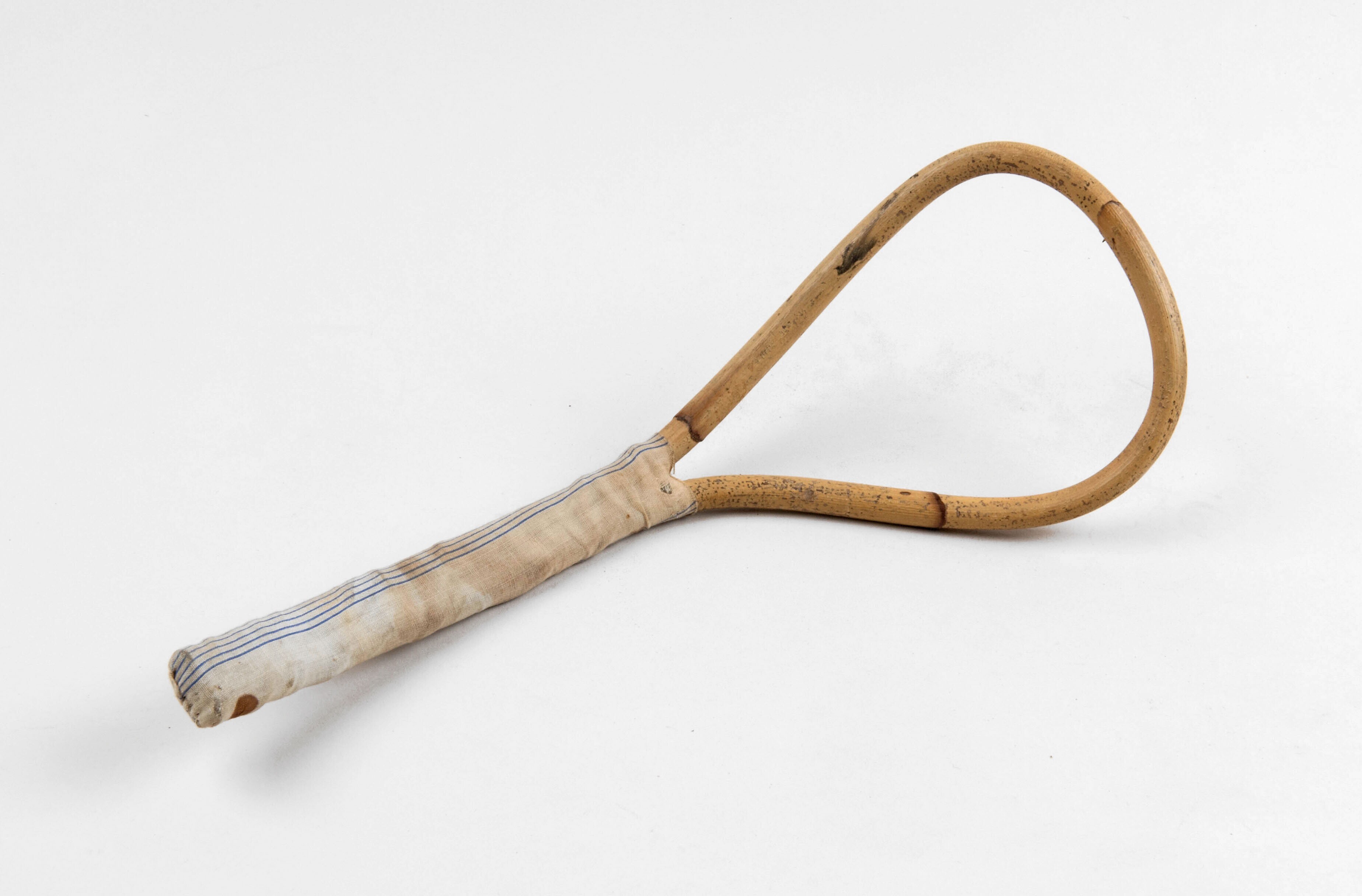 Model van een van bamboe gevlochten flesvormige mand...