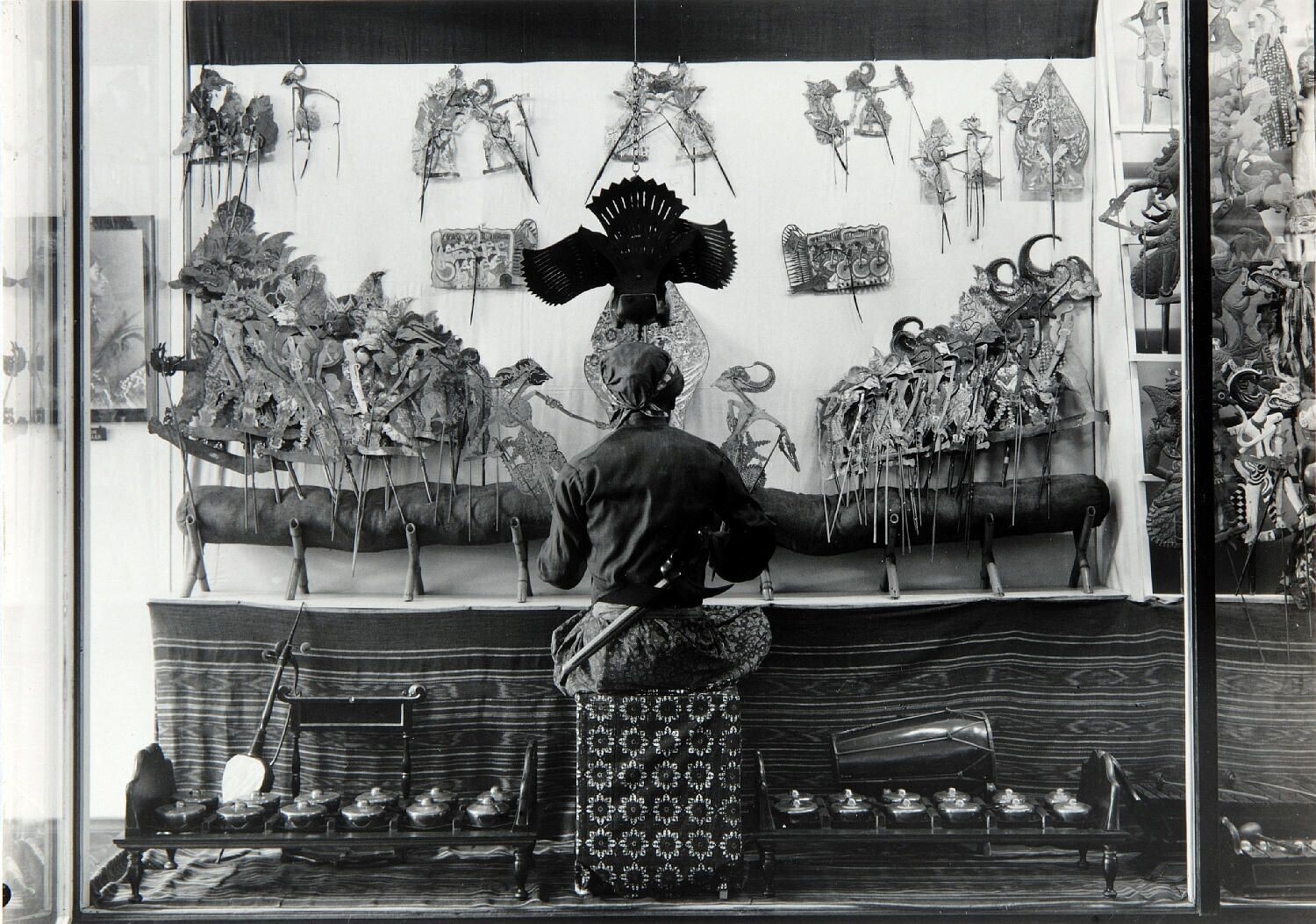 Een pop die een poppenspeler tijdens een wajang kuli...