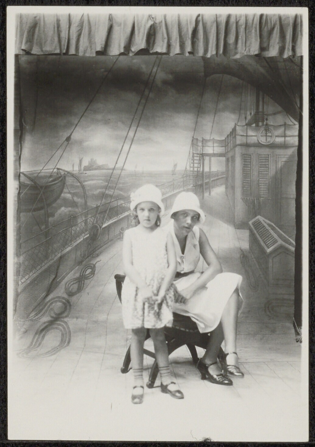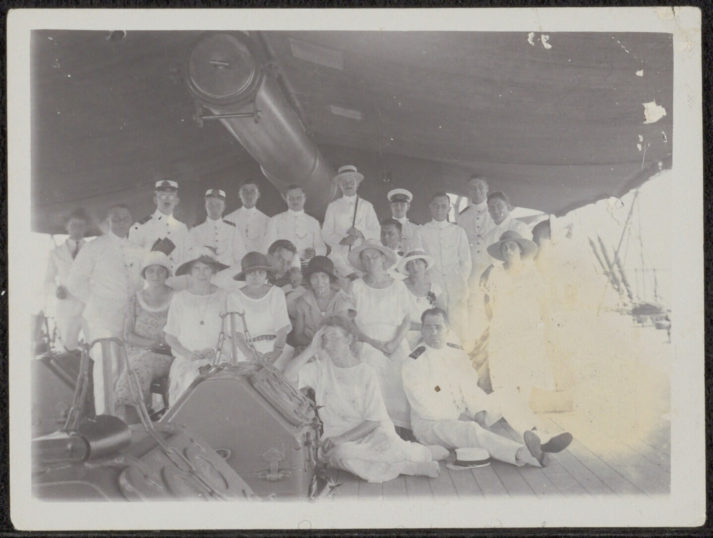 Groepsportret aan boord van een schip