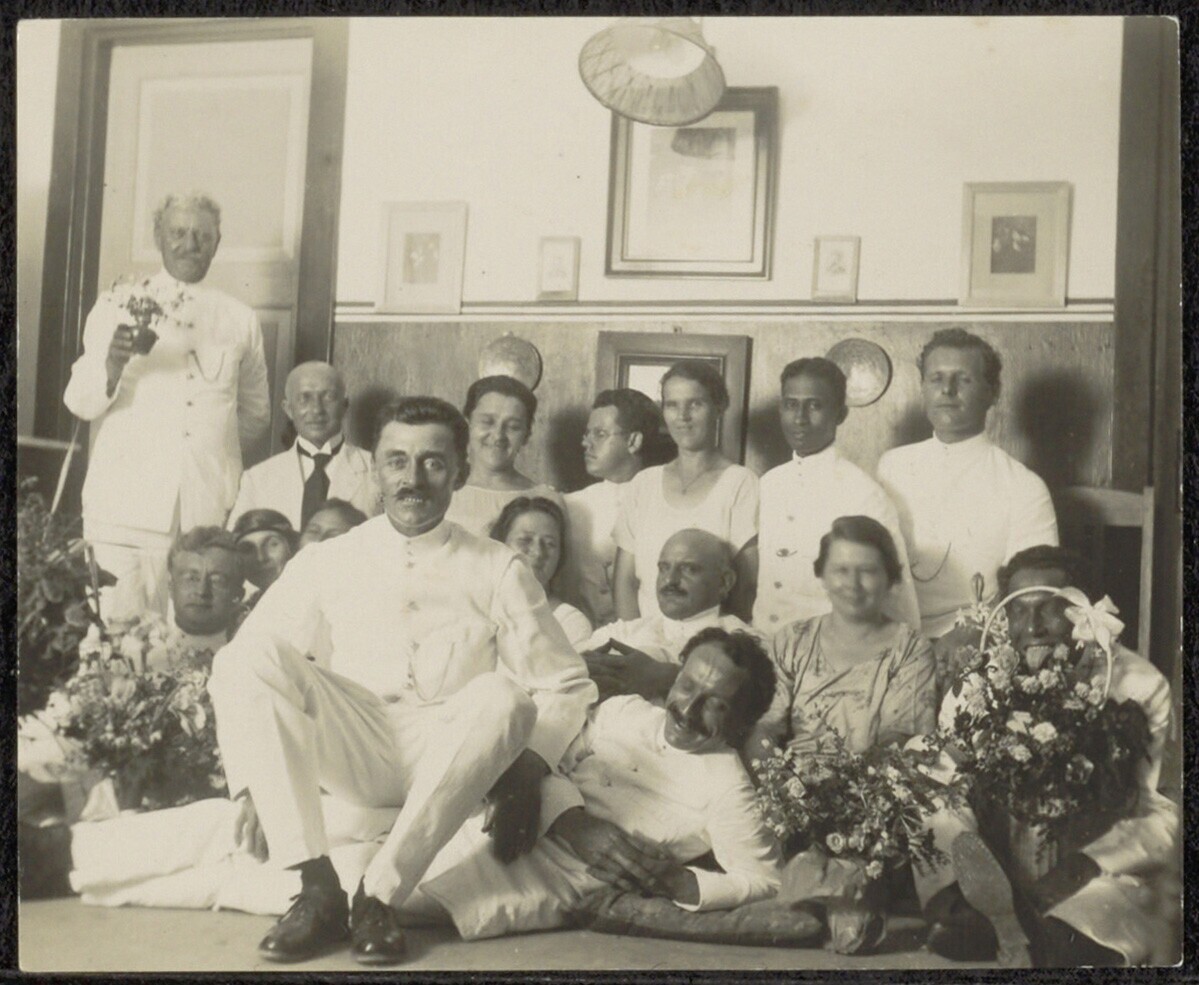 Groepsportret, met in het midden een geestelijke