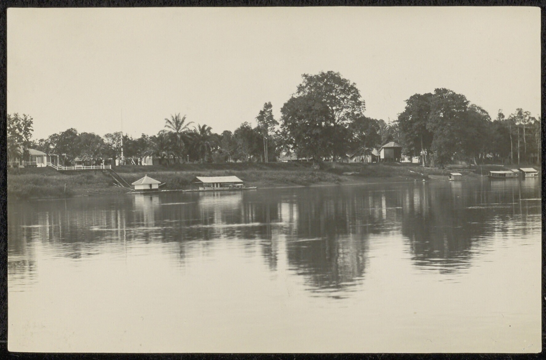 Boot met vermoedelijk woningen op een rivier