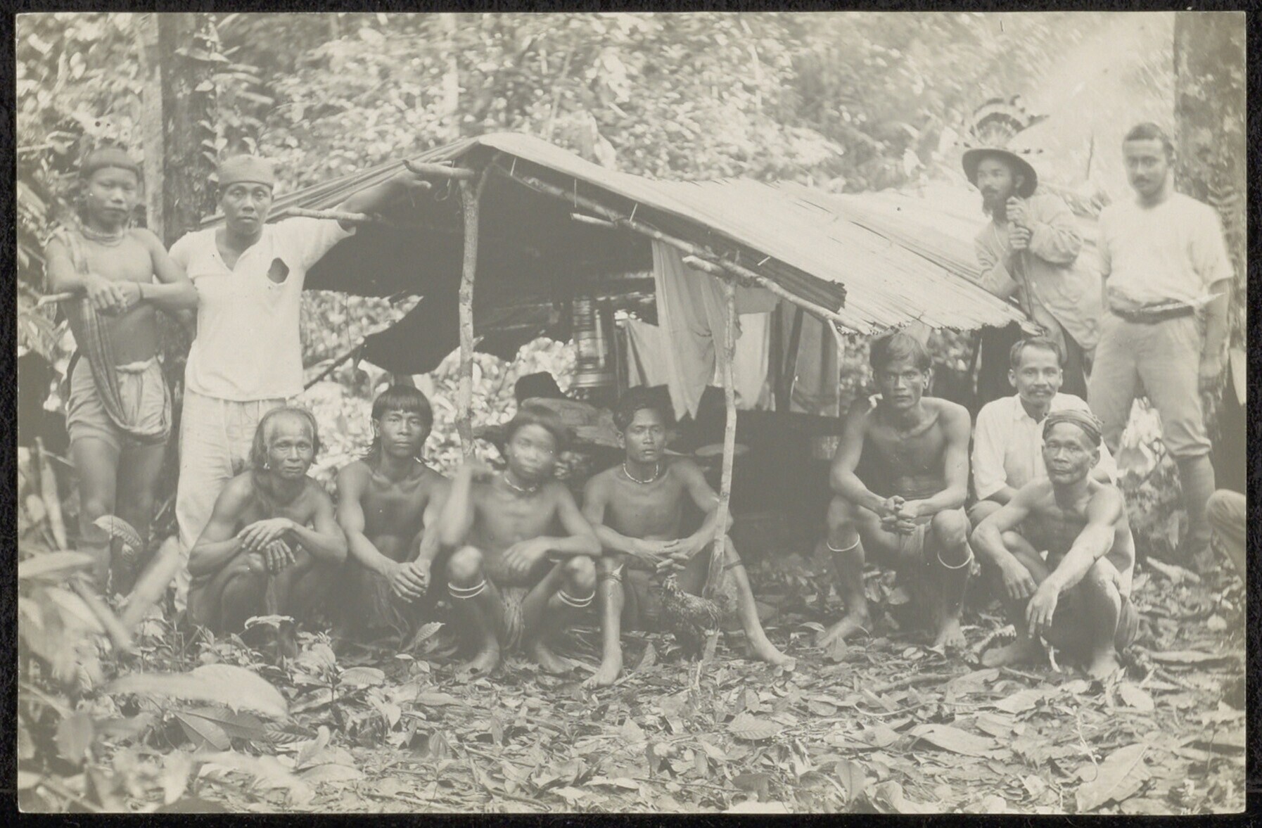 Groepsportret met Dayak mannen die mee zijn op een N...
