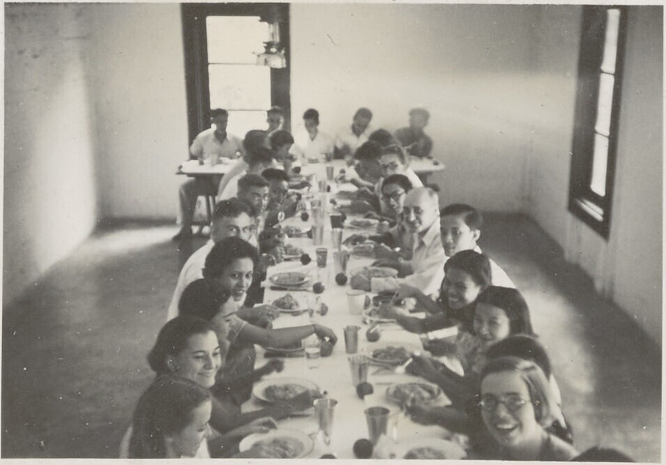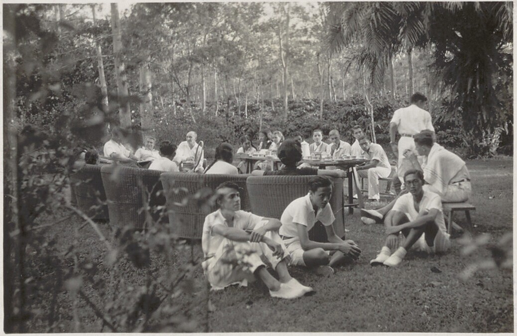 Aan tafel op het conferentiekamp te Ngrakah Pawon