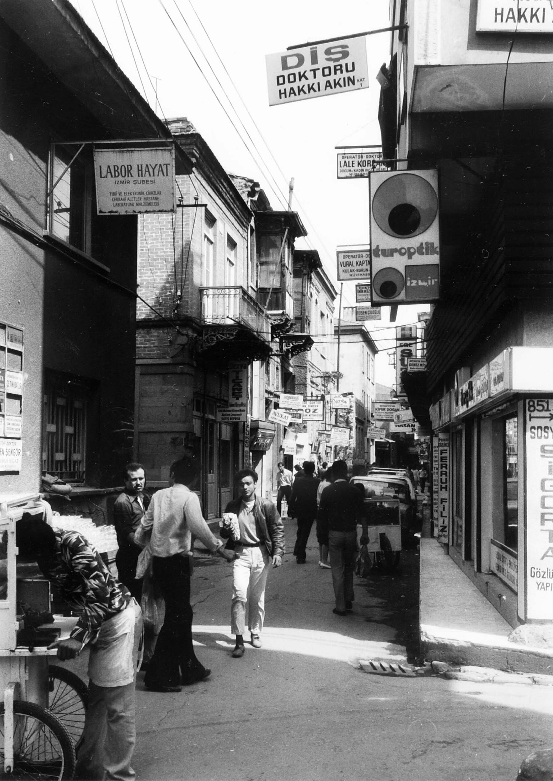 Izmir, straatbeeld met o.a. veel reclameborden van d...
